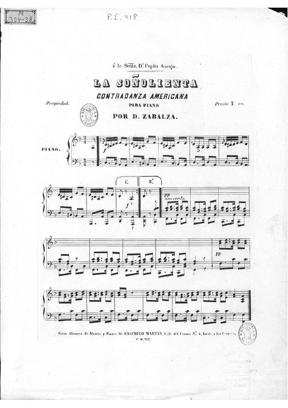 | Dedication | a la Señta. Da. [Señorita Doña] Pepita Asenjo |