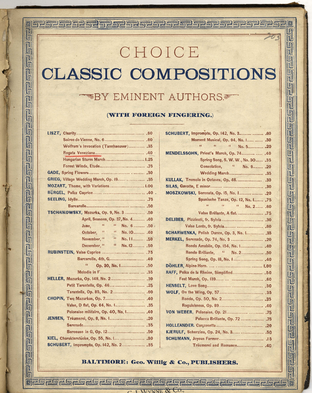 Publisher. Info. Baltimore: Geo. Willig & Co., n.d.(ca.1880).