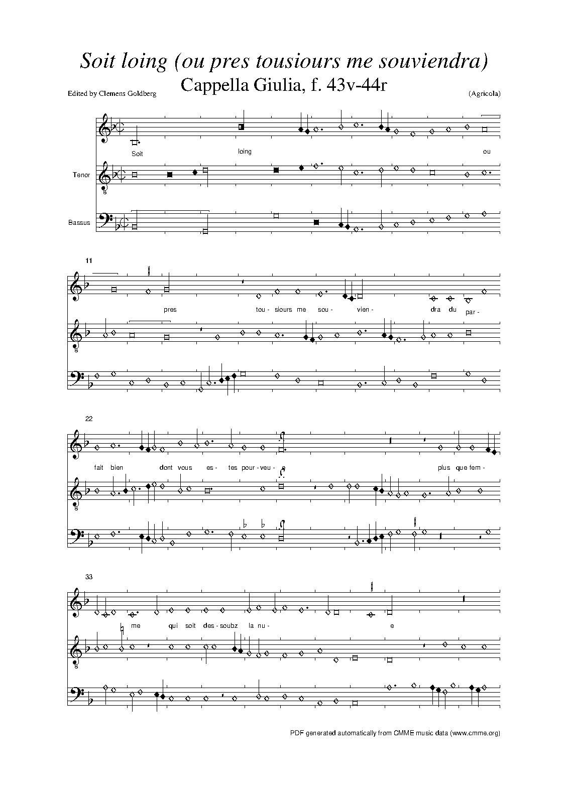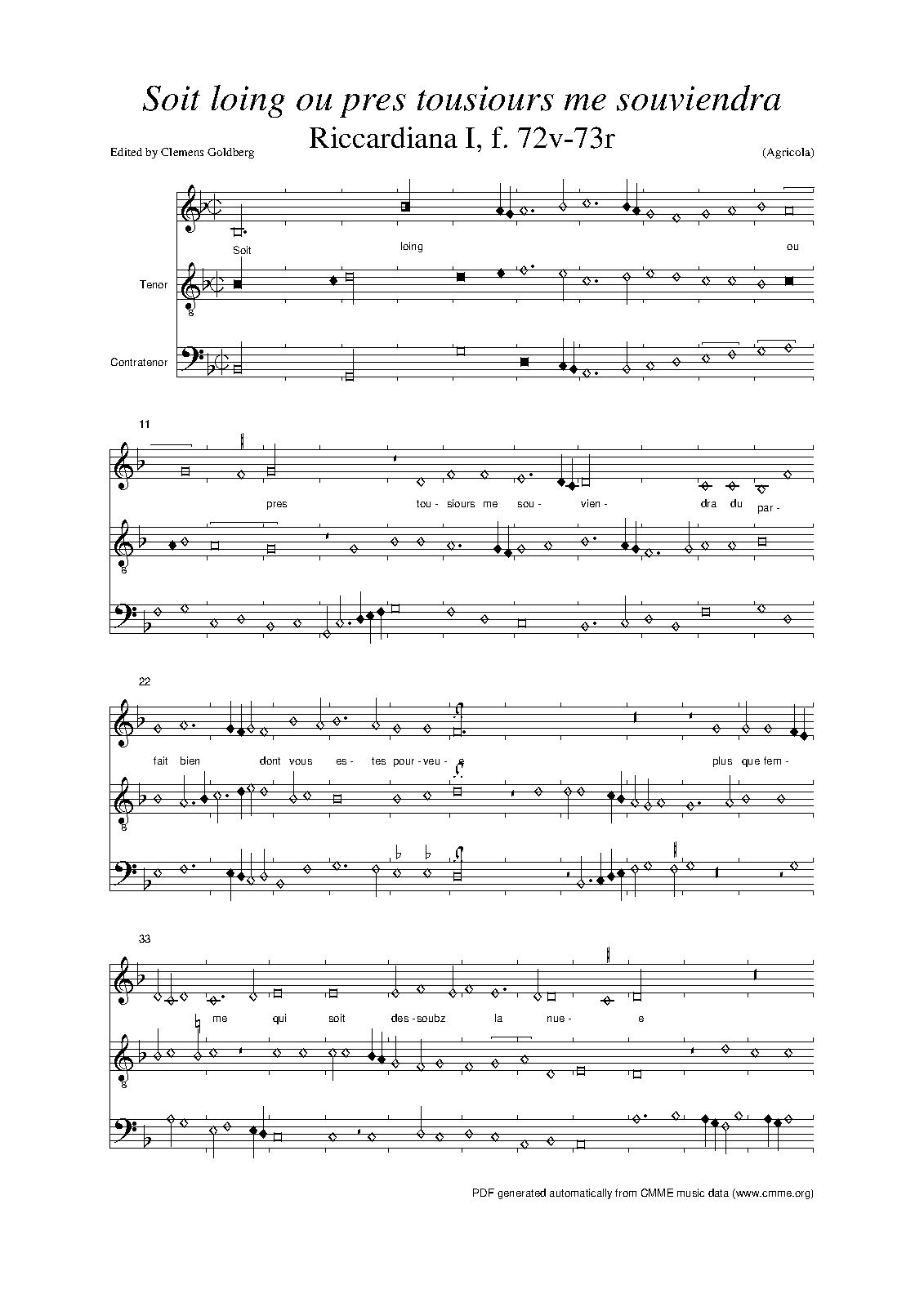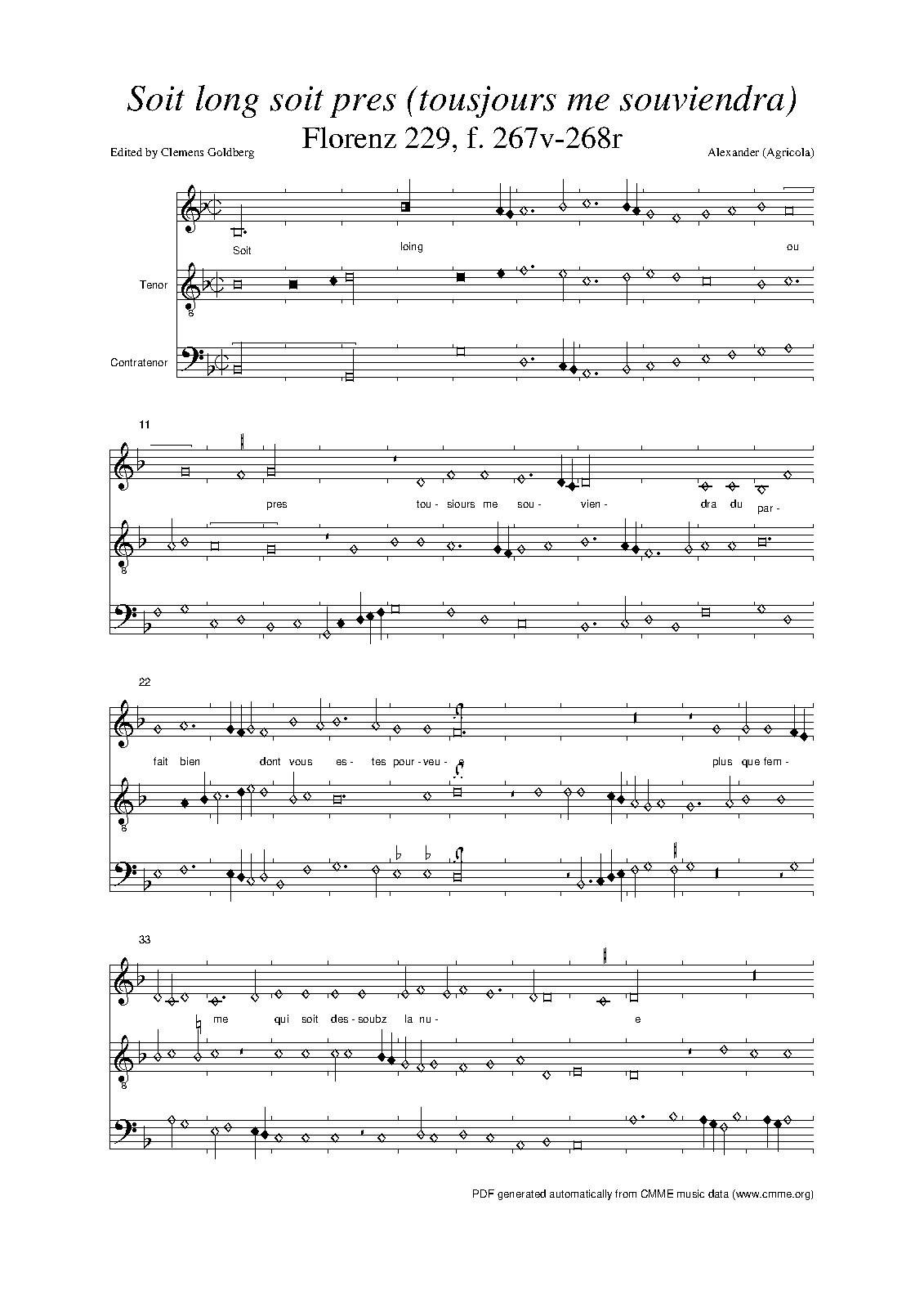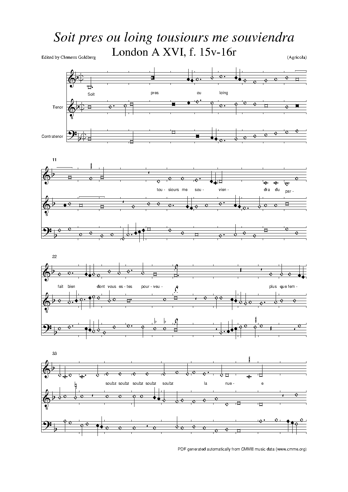 | Work Title | Soit loing ou pres tousjours me souviendra |