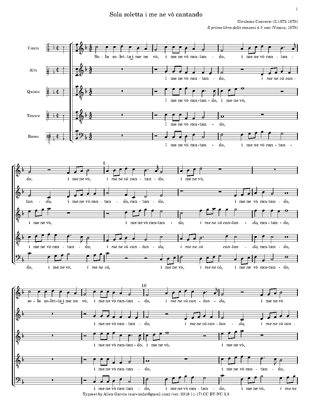 | Work Title | Sola soletta i me ne vò cantando |