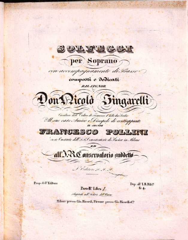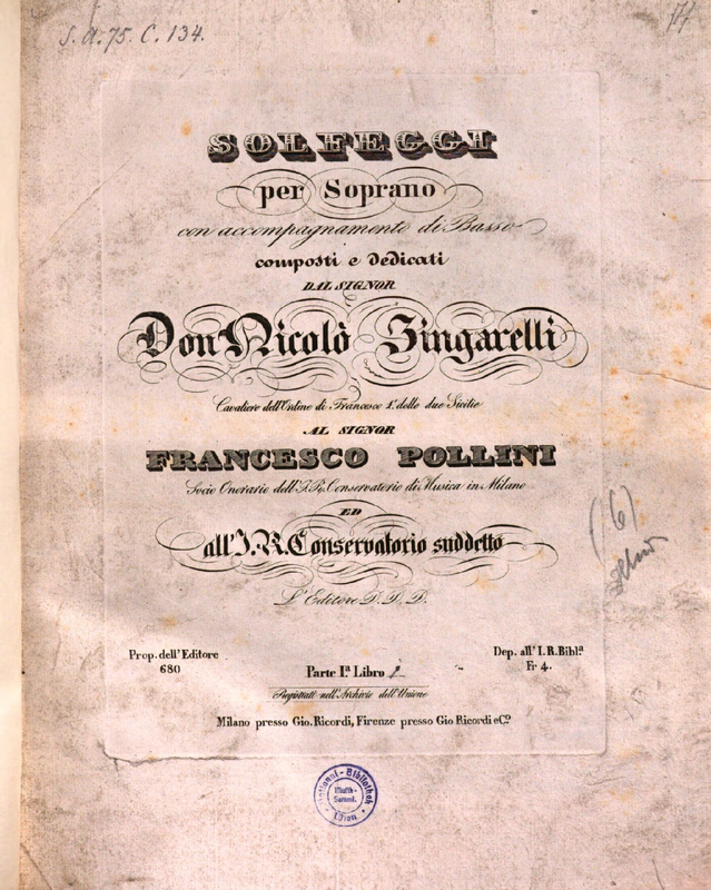 Published in 2 Parts of 3 Books each; Part I containing 41 solfeggi, Part II with 50. However, all of the solfeggi contained in Part I are included in Part II, mostly with different numbering.