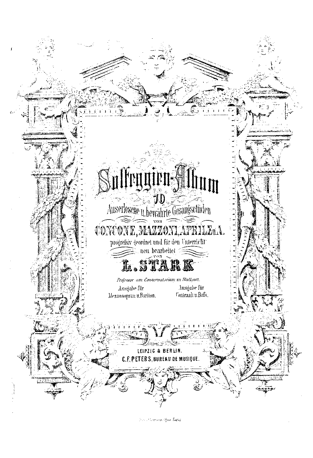 Solfeggien-Album. 70 auserlesene u bewährte Gesangsetüden von Concone, Mazzoni, Aprile u.A. progressiv geordnet und für den Unterricht neu bearbeitet von L. Stark