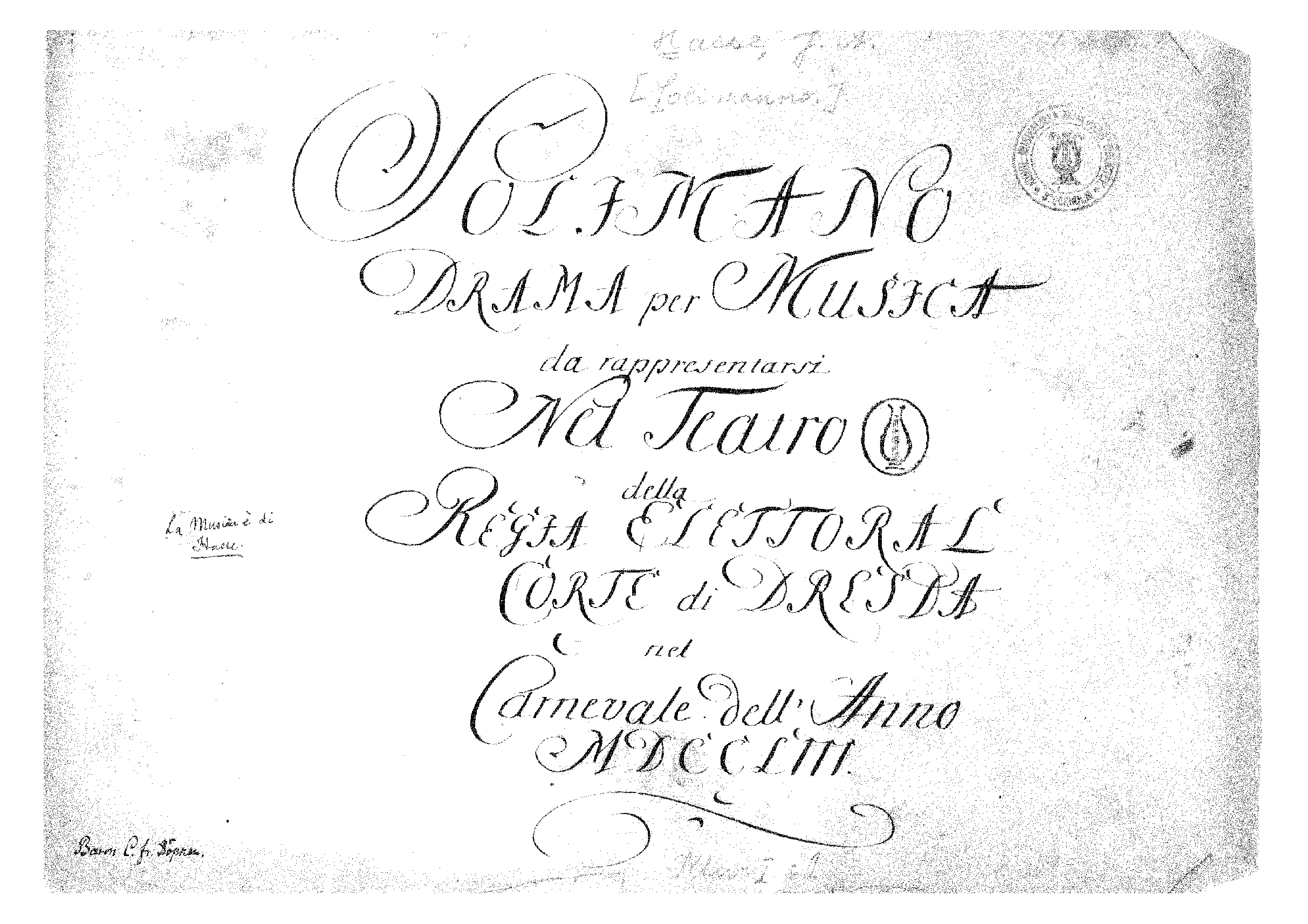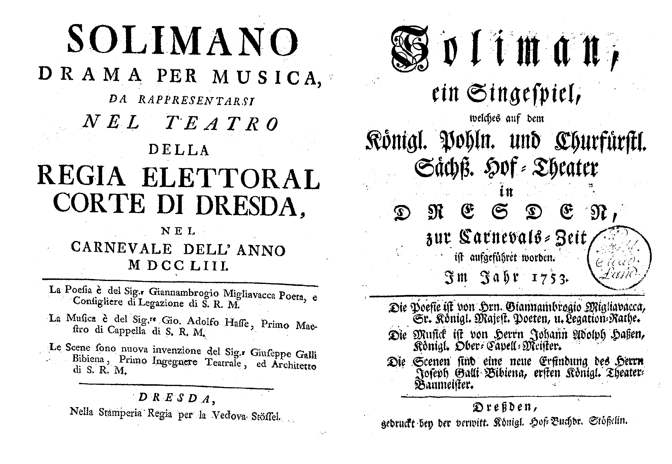 | First Performance. | 1753-02-05 in Dresden, Hofoper (Opernhaus am Zwinger) A 1754-01-07 in Dresden, Hofoper (Opernhaus am Zwinger) B |