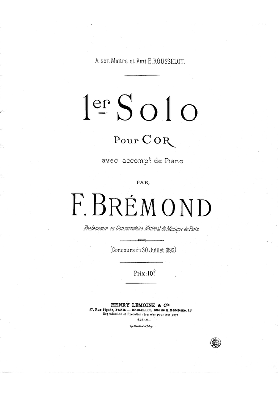 | Alternative. Title | 1er solo pour cor avec accomp.t de piano |