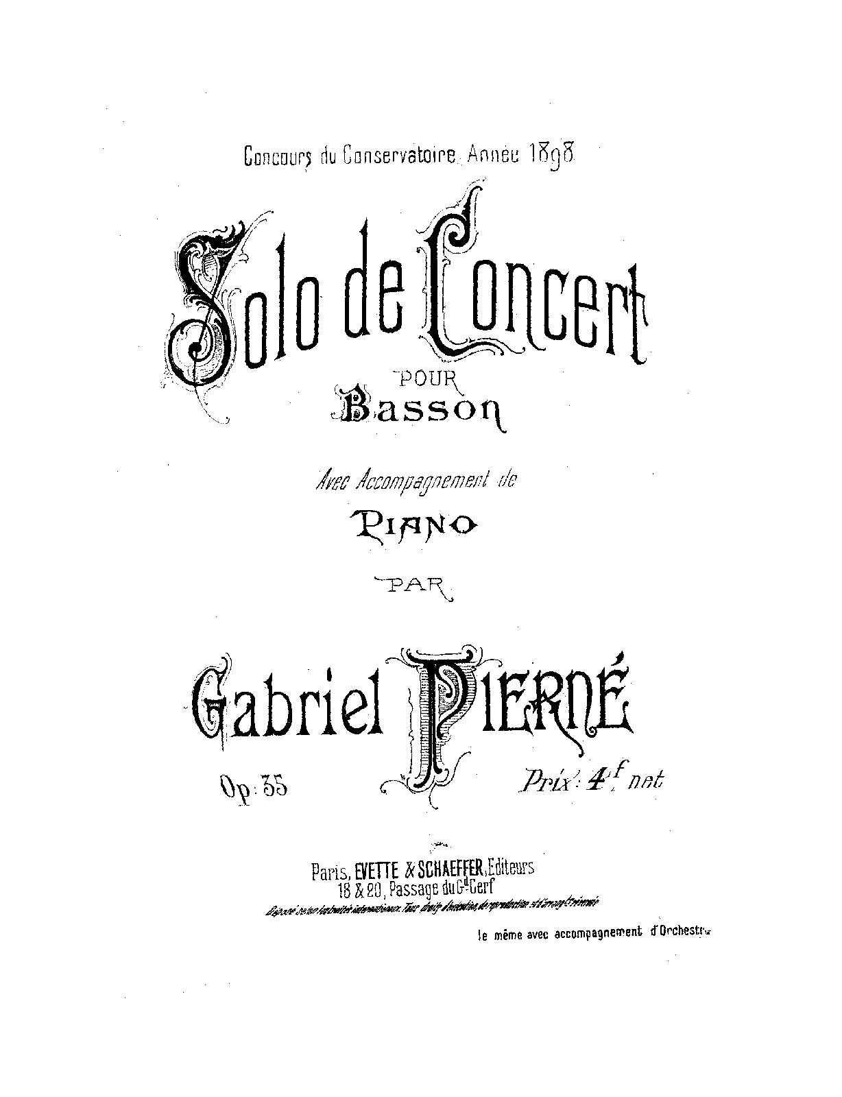 | Extra Information | This work was used as an examination piece (Morceaux de concours) by the Conservatoire de Paris. The Conservatoire used this work in the following year(s): 1898, 1906, 1914, 1922, 1932, 1943. BNF also seems to list a bassoon & orchestra version from E. & Sch. published in 1920? |