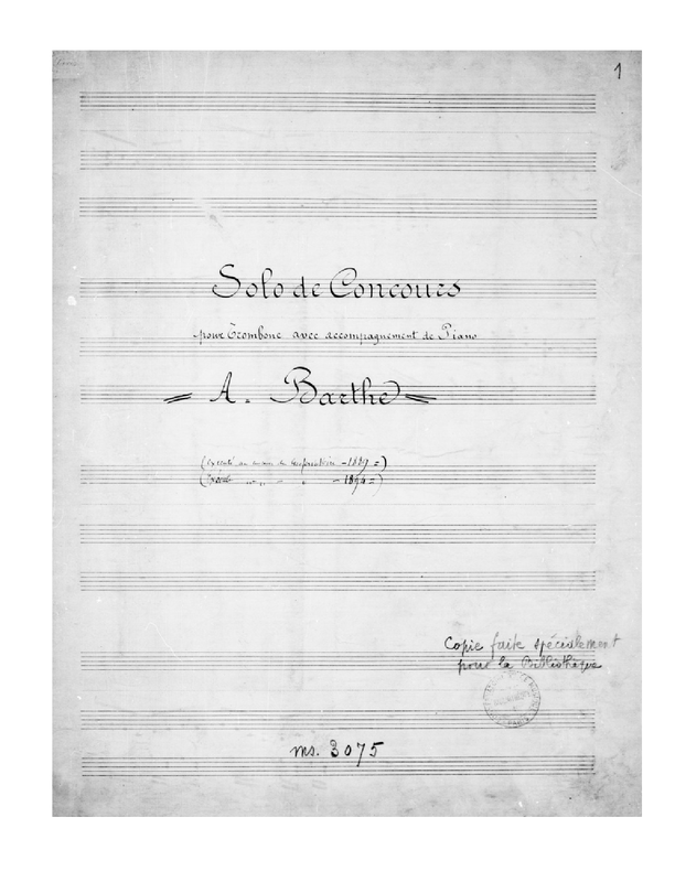 | Extra Information | This work was used as an examination piece (Morceaux de concours) by the Conservatoire de Paris. The Conservatoire used this work in the following year(s): 1889, 1894. |