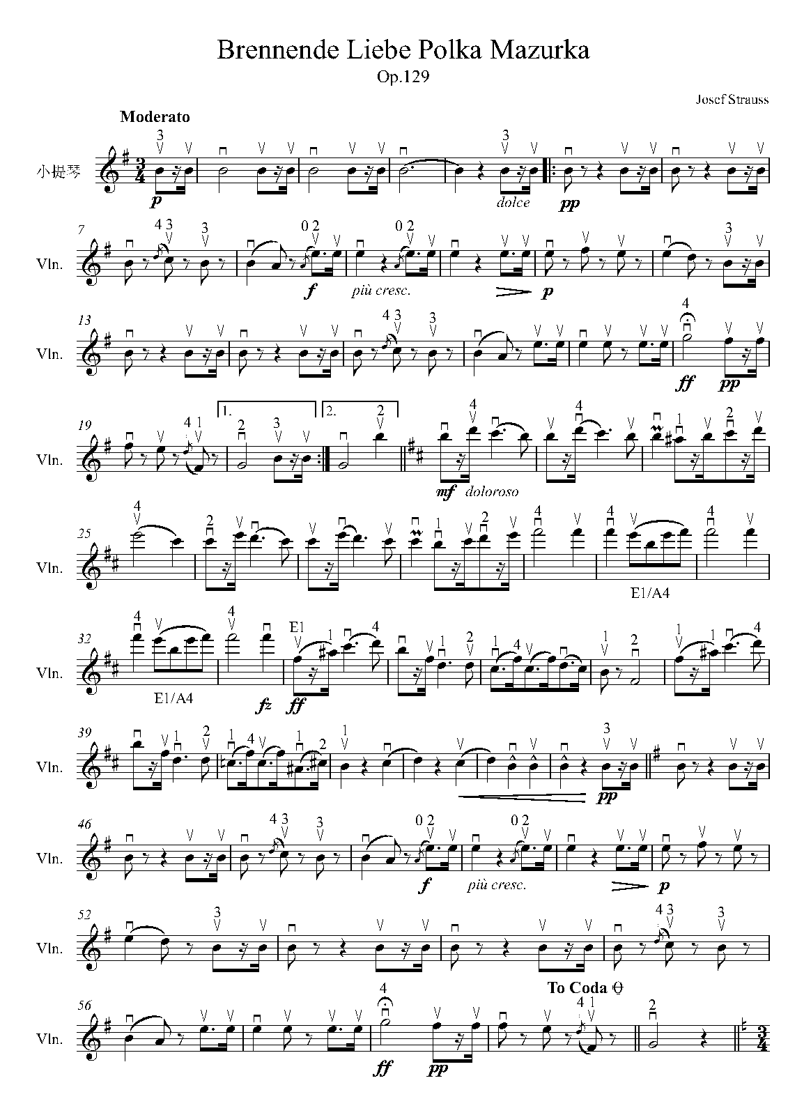 | Work Title | Solo for Violin from Strauss's 'Brennende Liebe, Op.129' |