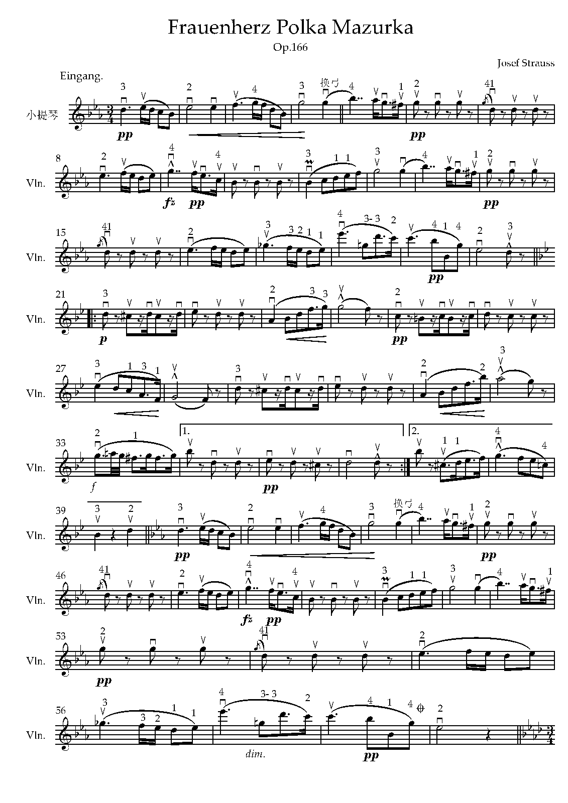 | Work Title | Solo for Violin from Strauss's 'Frauenherz, Op.166' |
