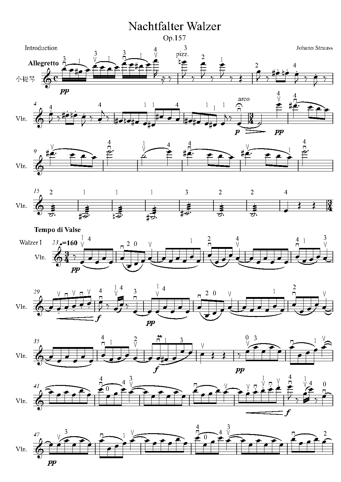 | Work Title | Solo for Violin from Strauss's 'Nachtfalter Walzer, Op.157' |