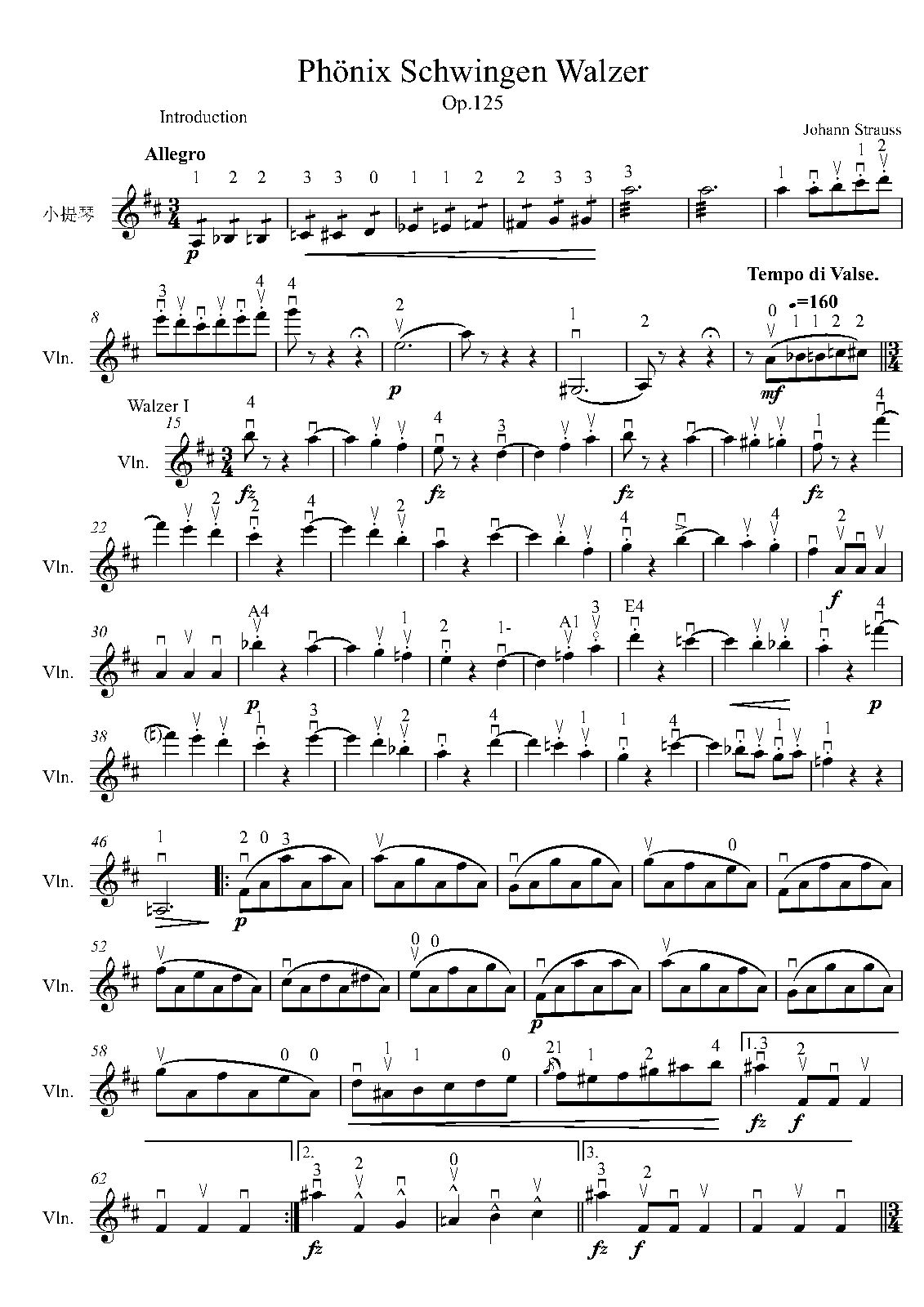 | Work Title | Solo for Violin from Strauss Jr.'s 'Phönix-Schwingen Walzer, Op.125' |