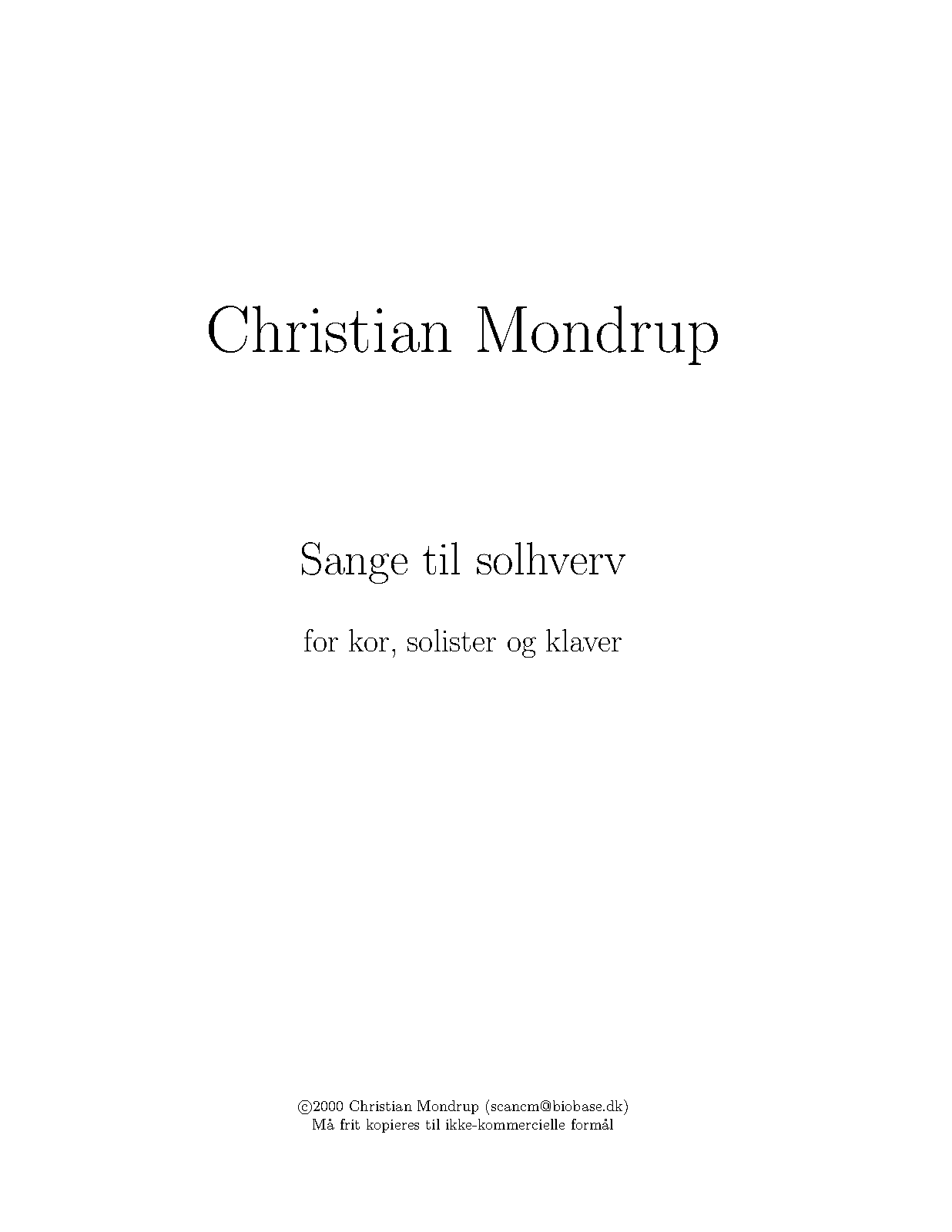 | Work Title | Sange til solhverv for kor, solister og klaver |