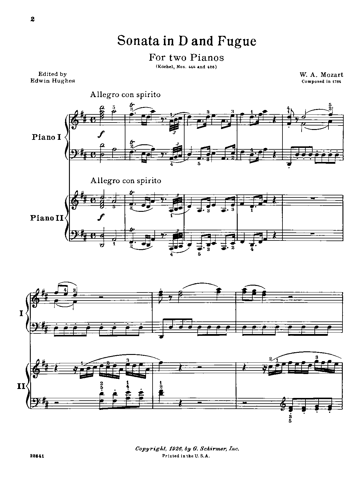 Publisher. Info. Sonata in D major and Fugue in C minor for 2 Pianos (pp.2-57)