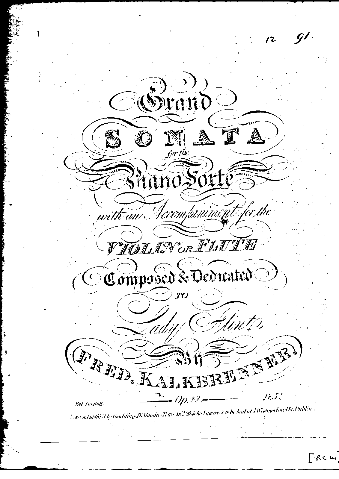 | Alternative. Title | Grand sonata, for the pianoforte with an accompaniment for the violin or flute |