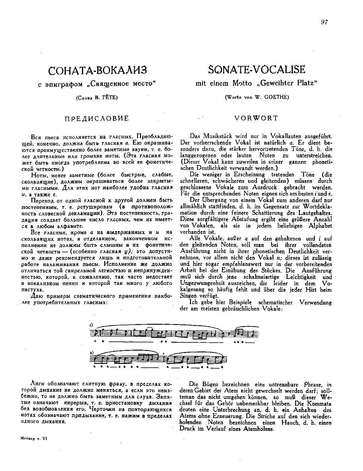 Alternative. Title Sonate-Vocalise mit einem Motto "Geweihter Platz"