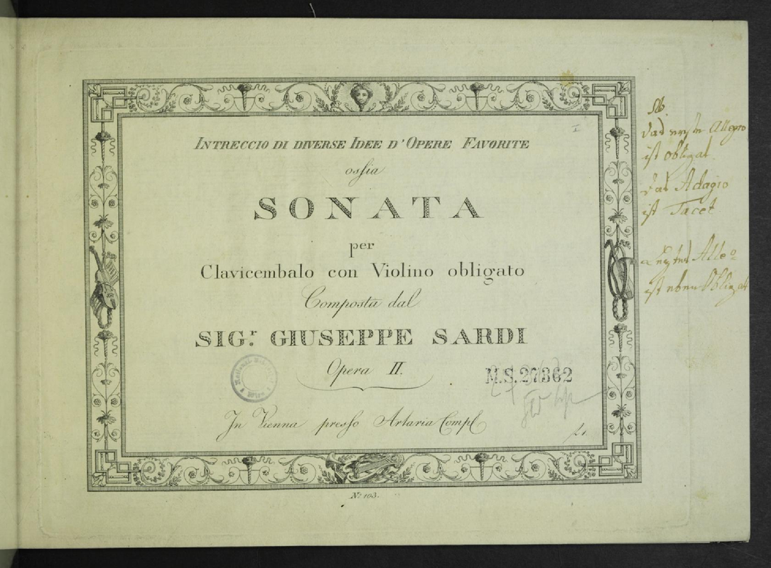| Alternative. Title | Intreccio di diverse idee d'Opere Favorite ossia Sonata per Clavicembalo con Violino obligato |