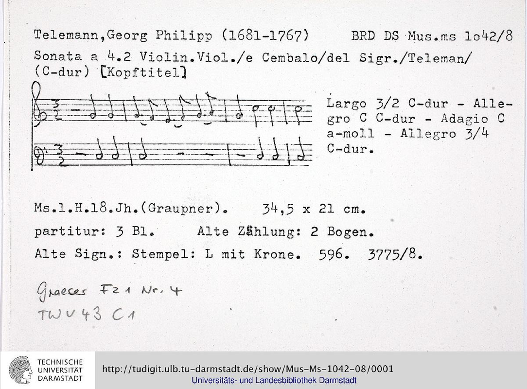 | Opus/Catalogue NumberOp./Cat. No. | TWV 43:C1 |