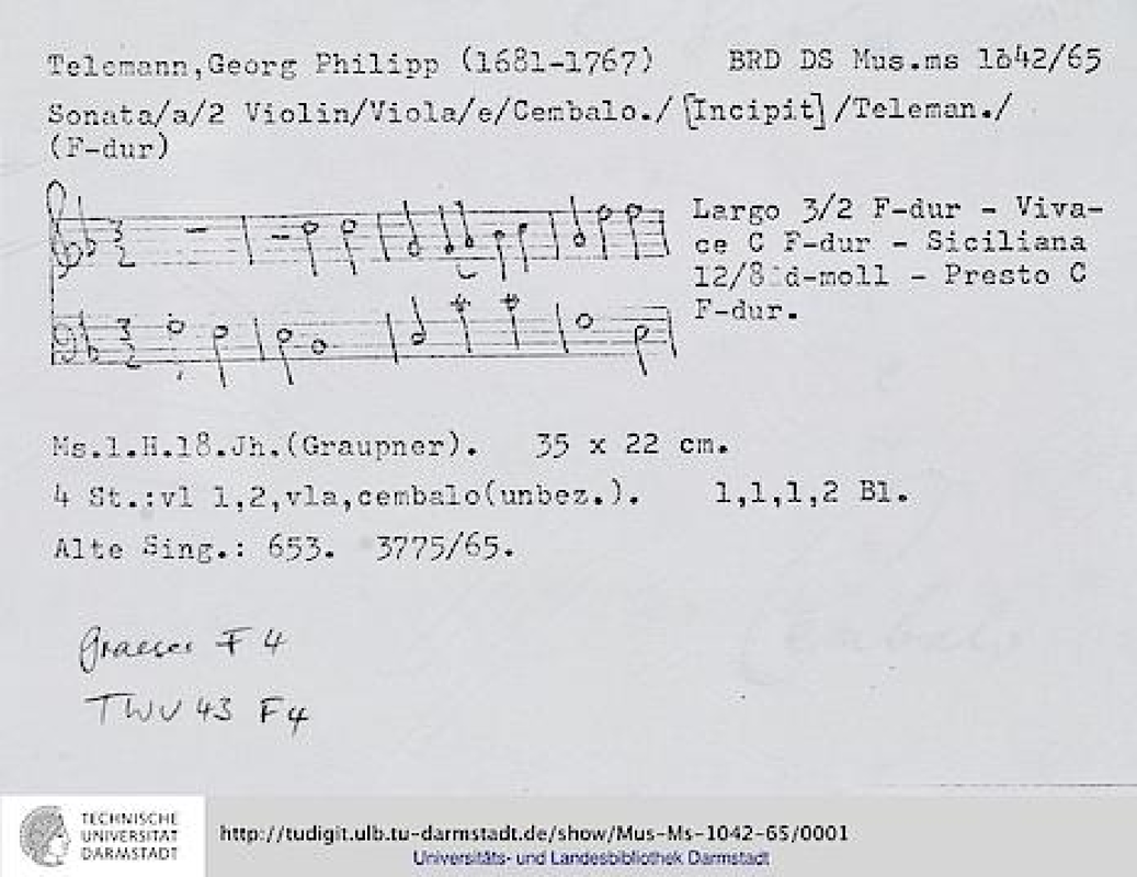 | Opus/Catalogue NumberOp./Cat. No. | TWV 43:F4 |