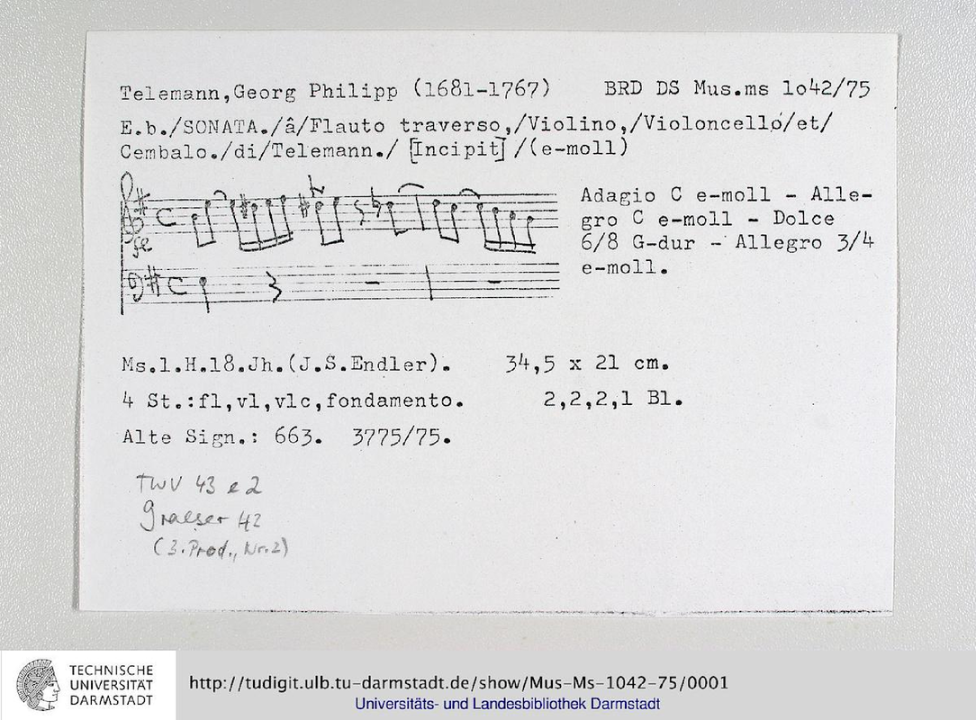 | Opus/Catalogue NumberOp./Cat. No. | TWV 43:e2 |