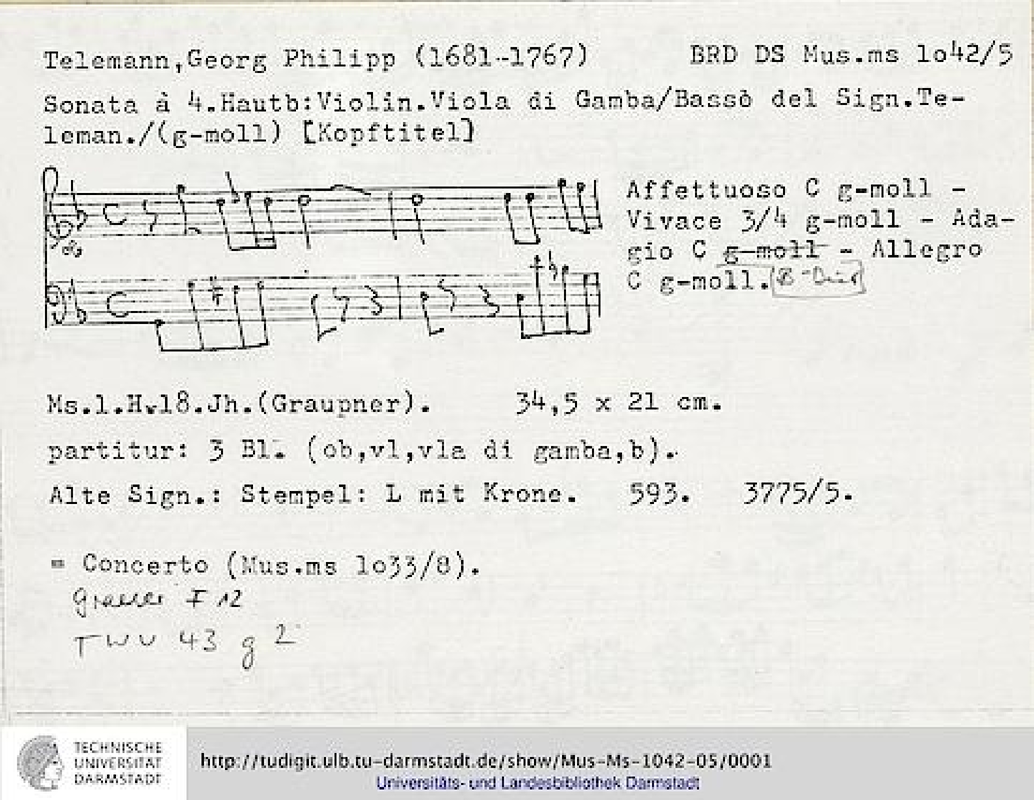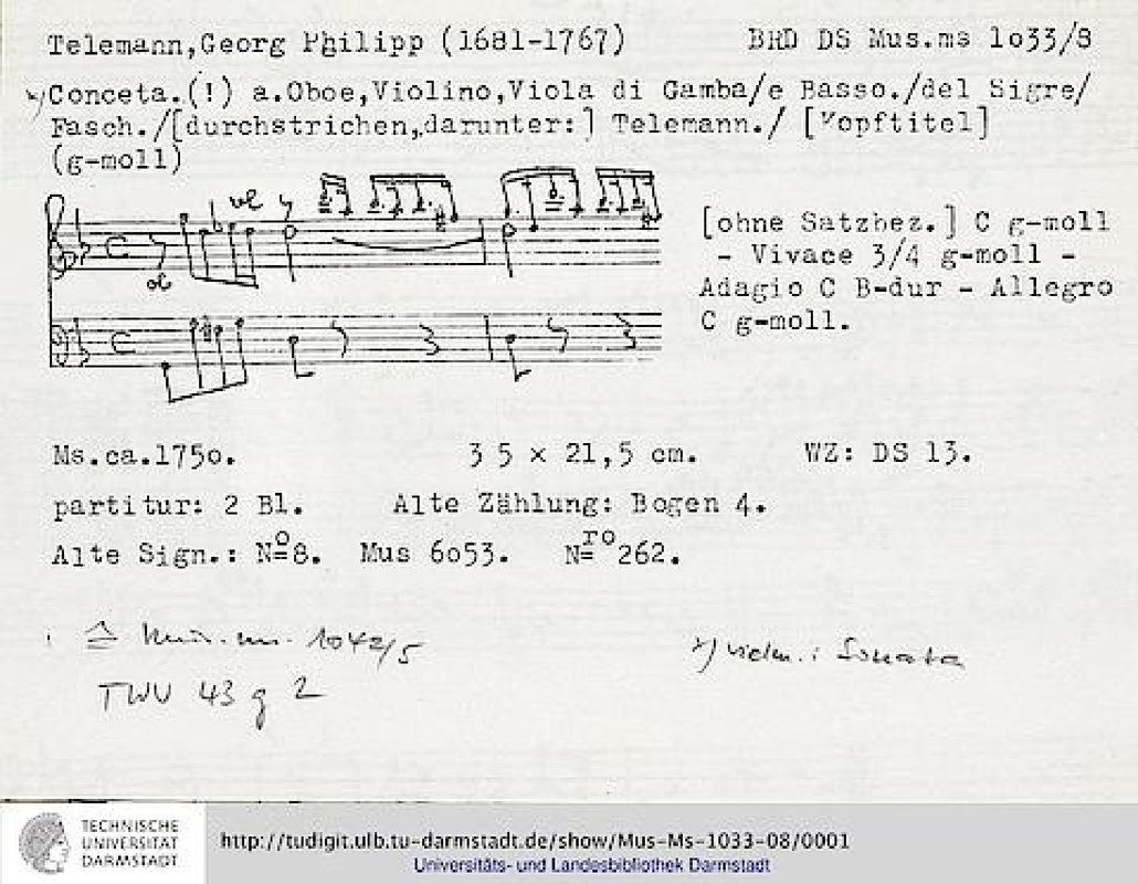 | Opus/Catalogue NumberOp./Cat. No. | TWV 43:g2 |