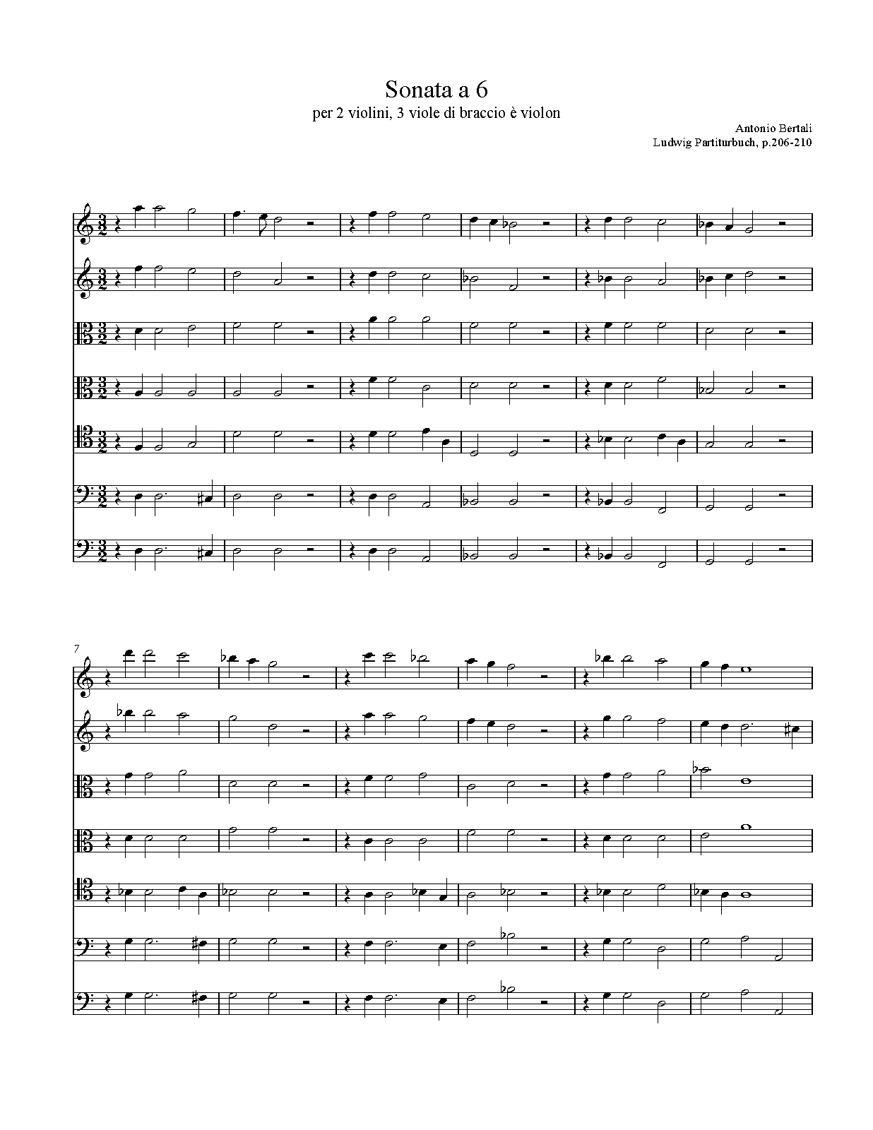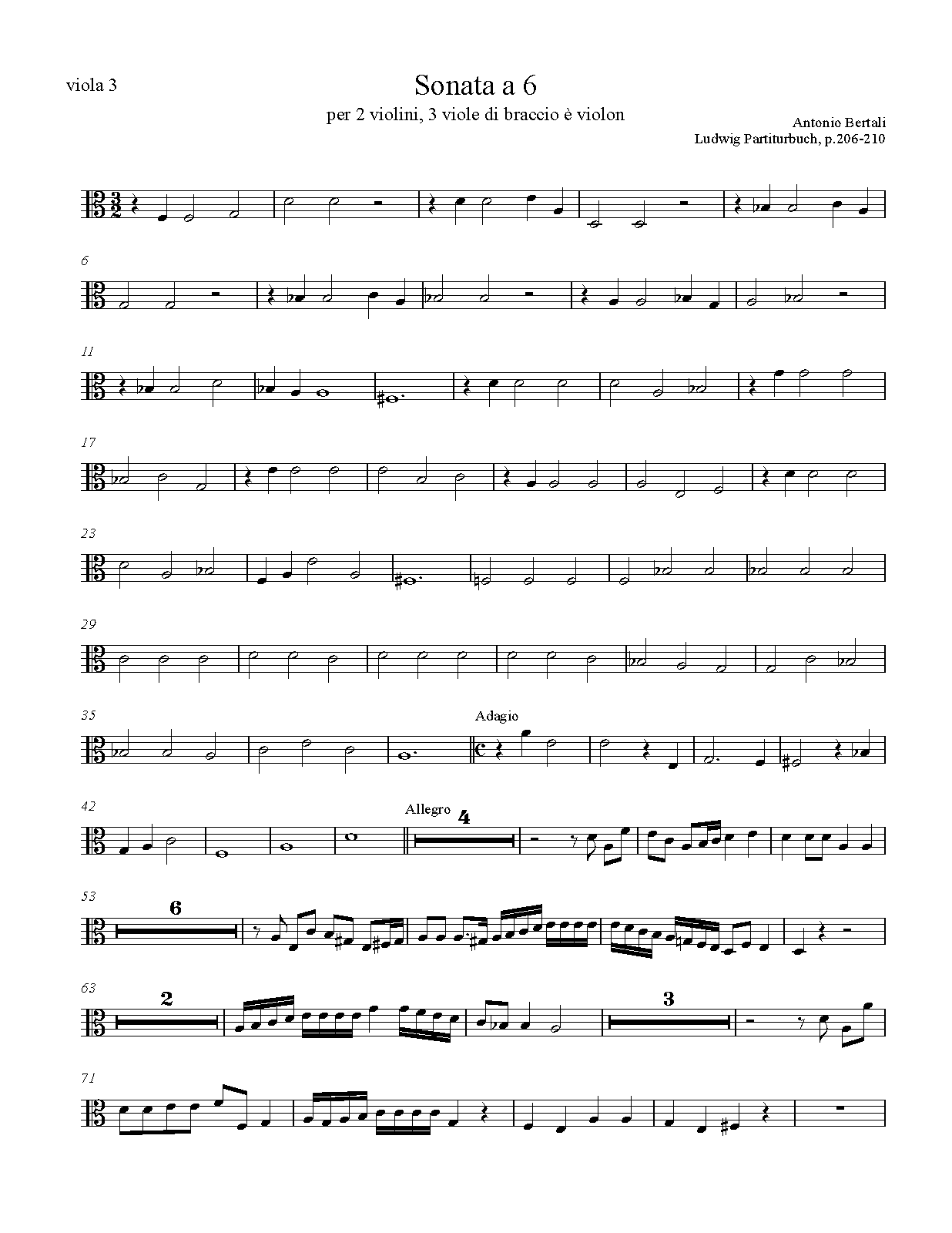 | Instrumentation | 2 violins, 3 violas, violone, continuo |