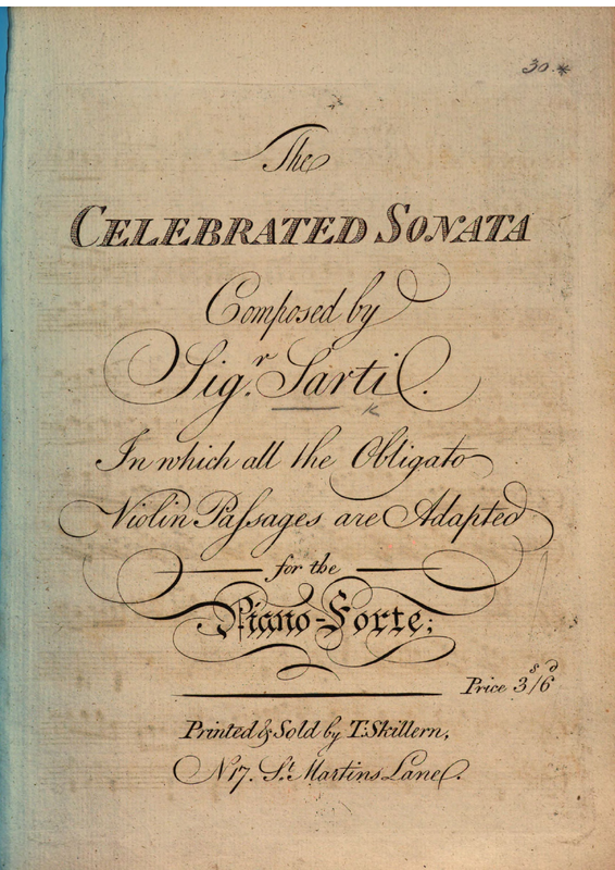 The Celebrated Sonata Composed by Sigr. Sarti. In which all the Obligato Violin Passages are Adapted for the Piano-Forte