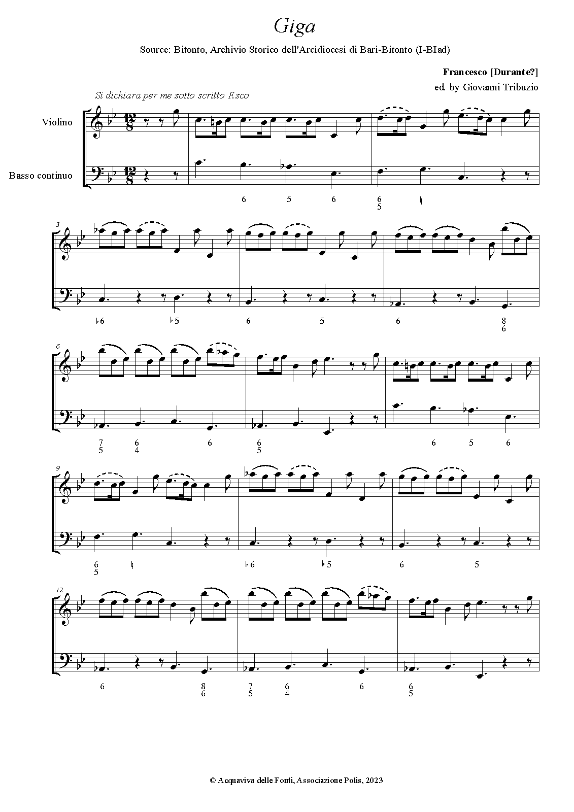 | Authorship Note Work discovered by F. Lospalluti in the Archivio Storico dell'Arcidiocesi di Bari-Bitonto and attributed to Francesco Durante in La musica a Bari: dalle cantorie medievali al Conservatorio Piccinni, a cura di D. Fabris e M. Renzi, Bari, Levante Editore, 1993. |