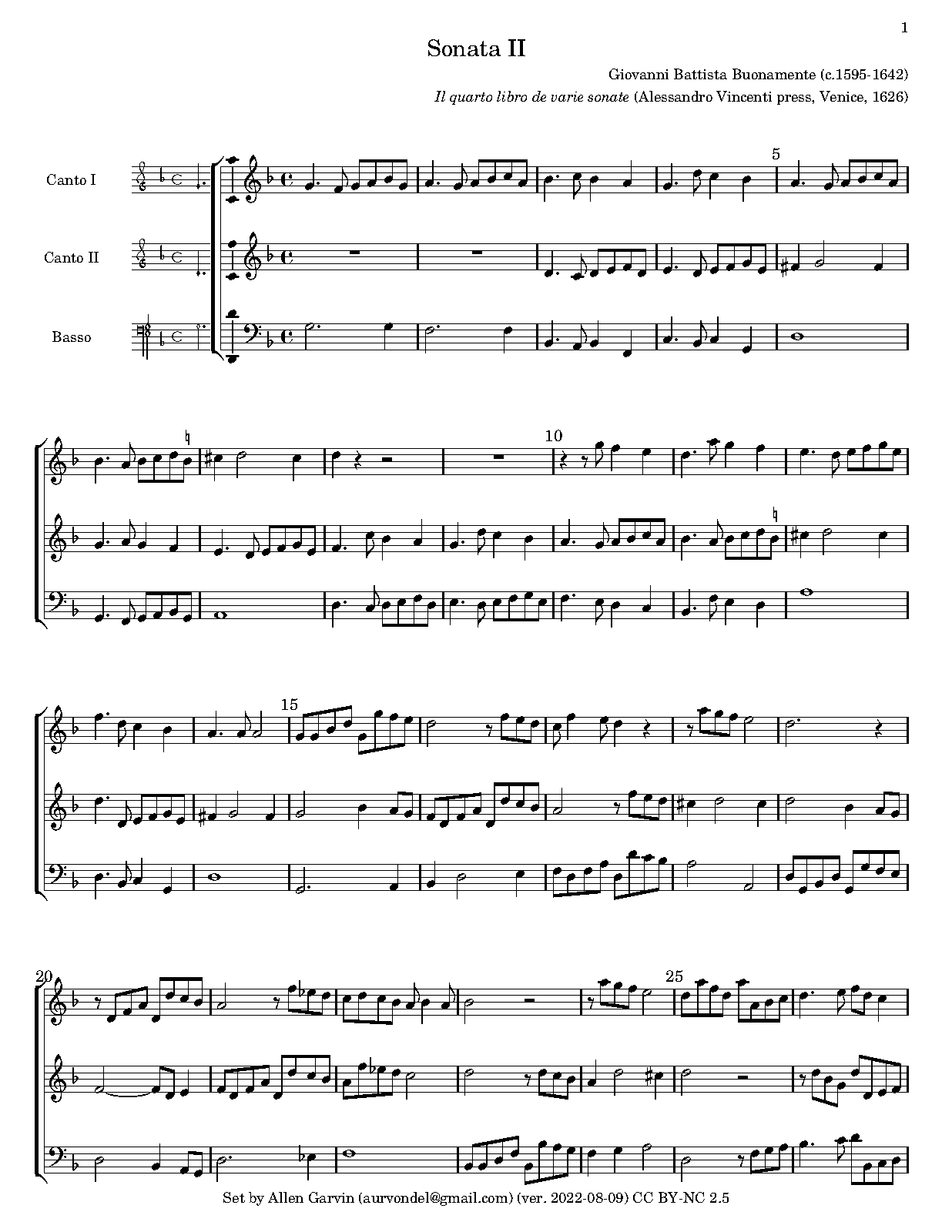| First Publication | 1626 in Varie sonate, Libro 4 (Buonamente, Giovanni Battista) (No. 2) |