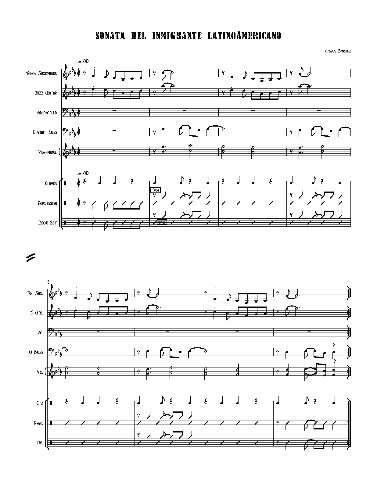 | Instrumentation | tenor saxophone (B♭), vibraphone, claves, percussion, drum set, guitar, cello, bass |