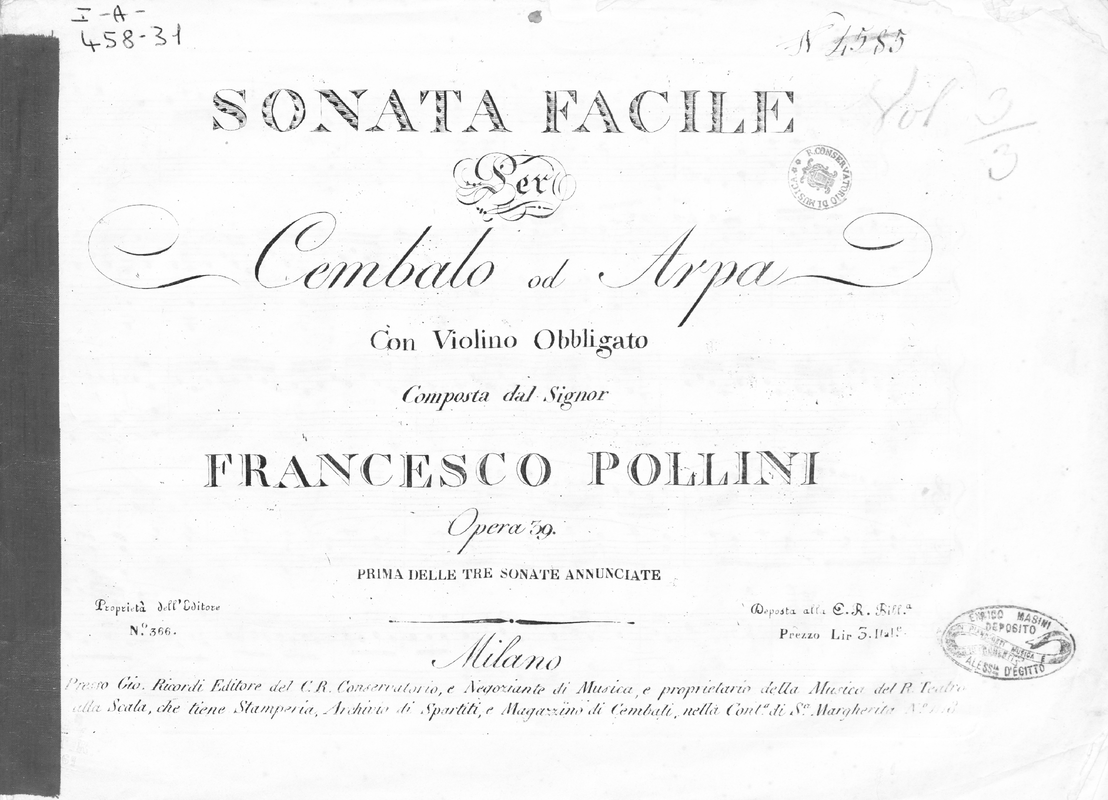 | Alternative. Title | Sonata facile per cembalo od arpa con violino obbligato |