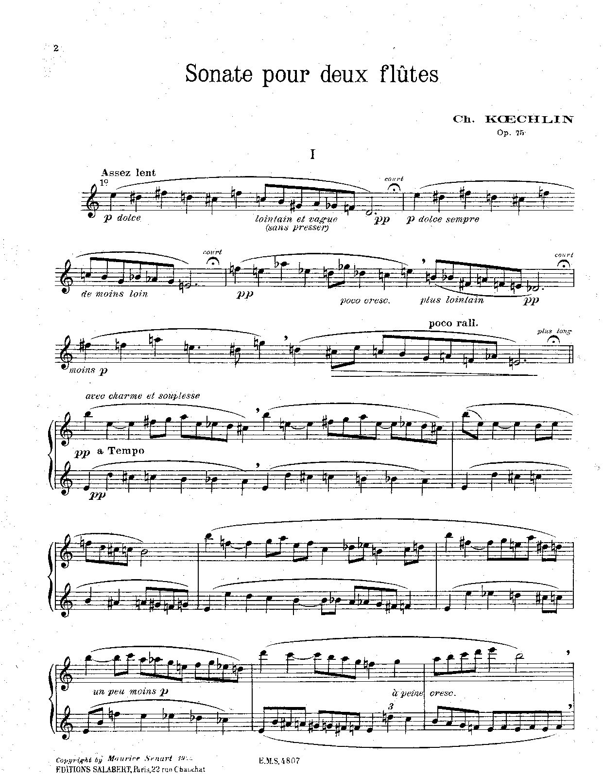 Sonate pour 2 flûtes, op. 75; Sonata for 2 Flutes, Op. 75