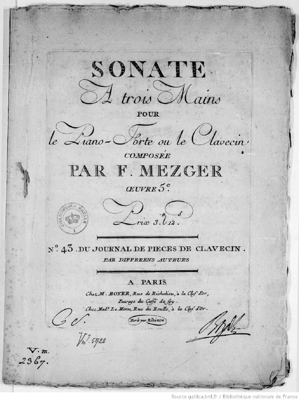 | Alternative. Title | Sonate a trois Mains pour le piano-forte ou le clavecin |