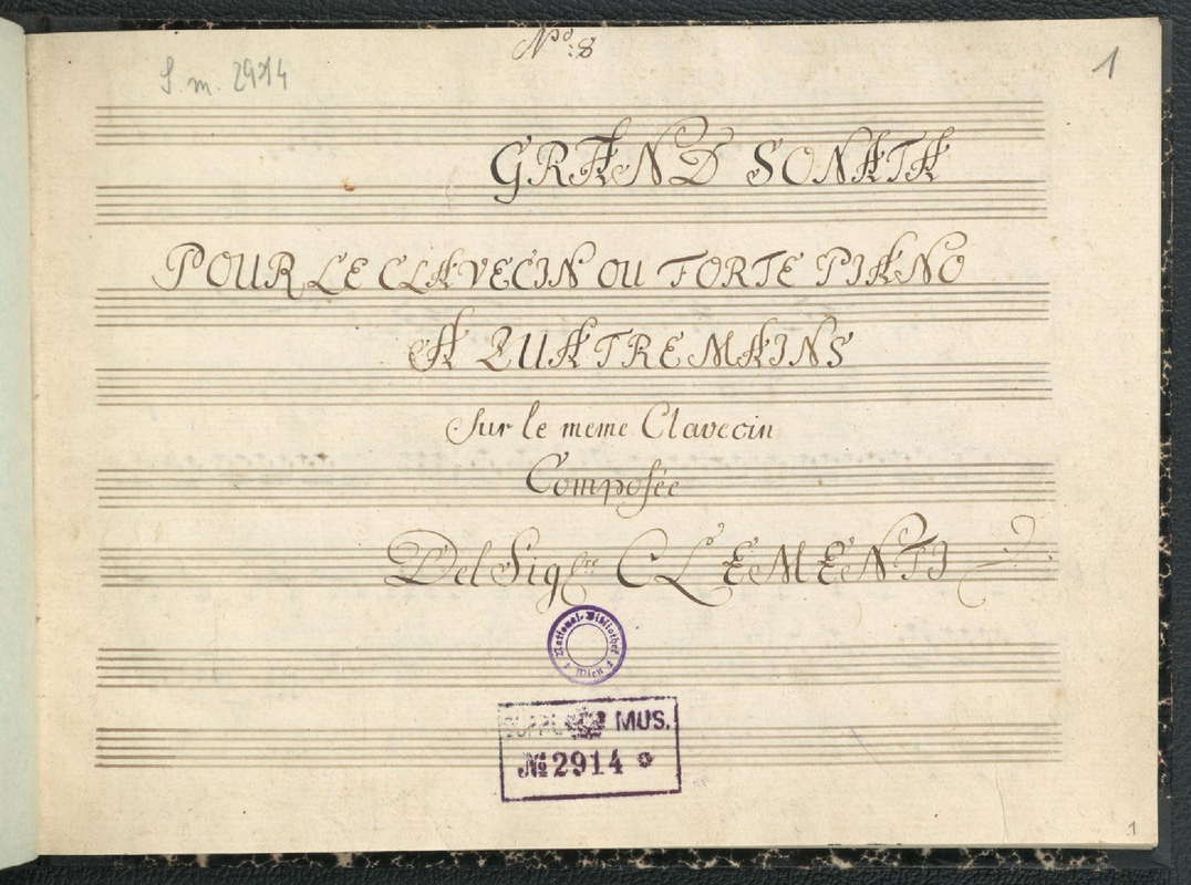 | Alternative. Title | Grand Sonata pour le clavecin ou forte piano a quatre mains sur le meme clavecin composee del Sigre Clementi [sic] |