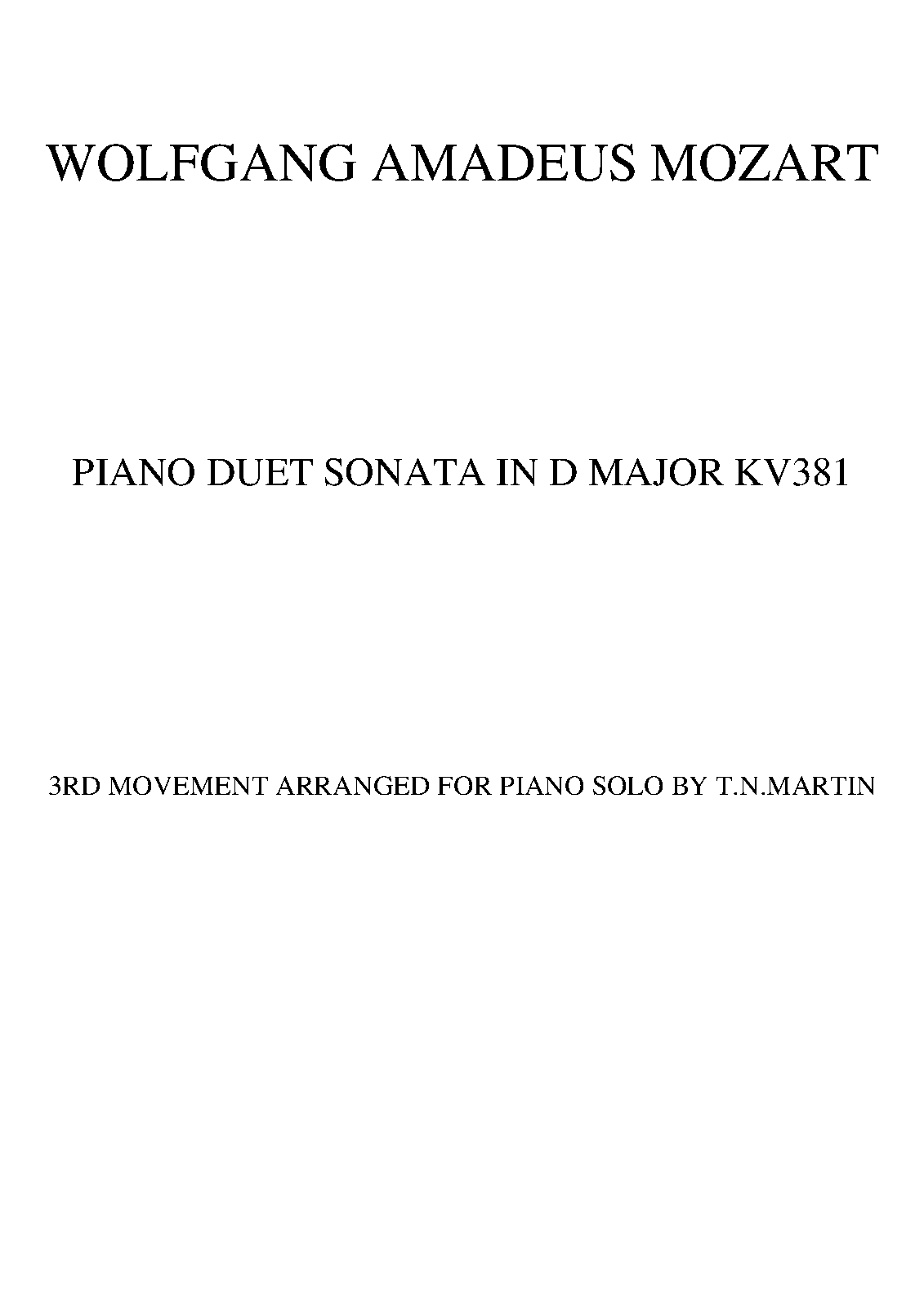 | Name Aliases | Klaviersonate D-Dur; Klaviersonate in D-Dur; KV 381; Klaviersonate KV 381; Klaviersonate KV 123a; |