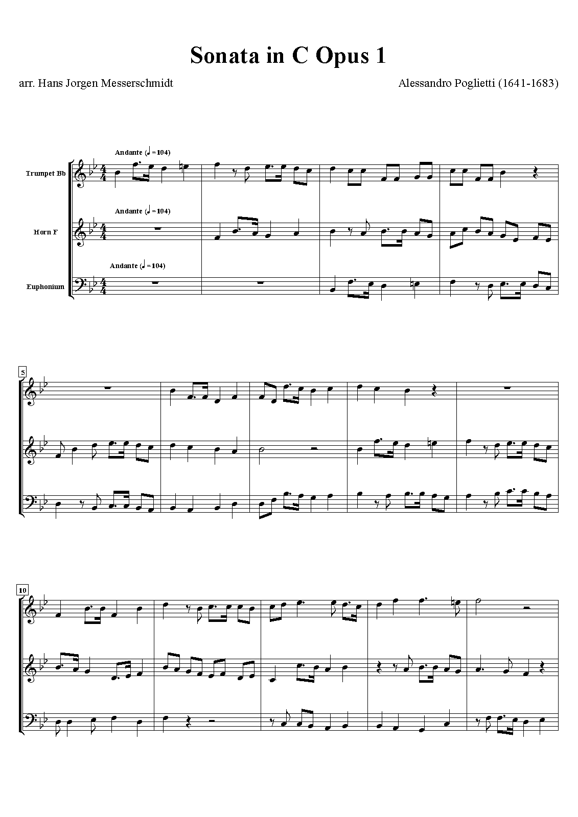 | Extra Information | This does not seem to be one of the sonatas listed at RISM-online (I expect it is probably in one of the portions of RISM not digitized (yet?)) - those sonatas listed in RISM-online (a few works, several works with multiple sources, i.e. duplicate appearances of the same "works") by Poglietti have instrumentation strings, sometimes 2 trumpets or natural trumpets (clarini), and either written-out organ or basso-continuo, if I am reading right... (there are also works by him there not described as sonatas.) - Schissel (dividing what might be considered one large movement above based on its fermatas...) |