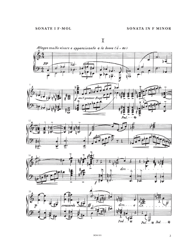 The Sonata in F minor, which like the Sonatina in E major is an example of his so-called "12-note serial composition in a fixed key", is in four movements.