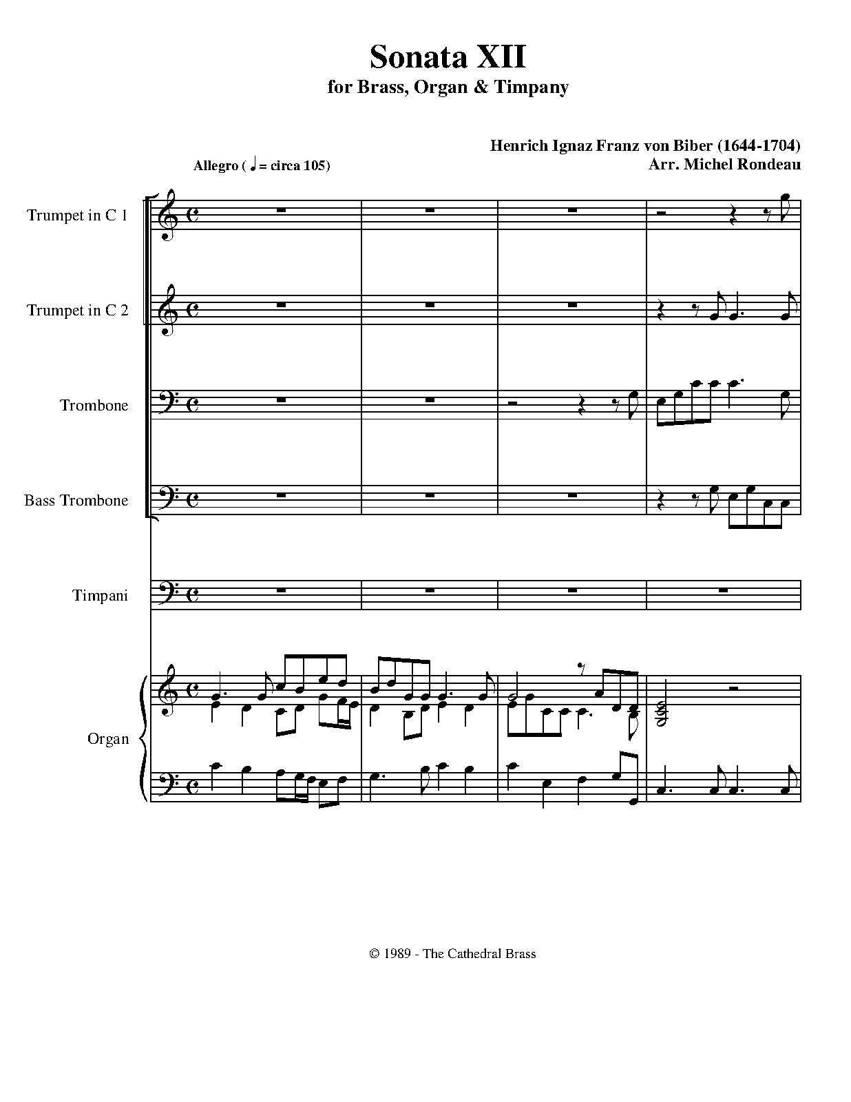 For 2 Trumpets, 2 Trombones, Timpani and Organ (Rondeau)