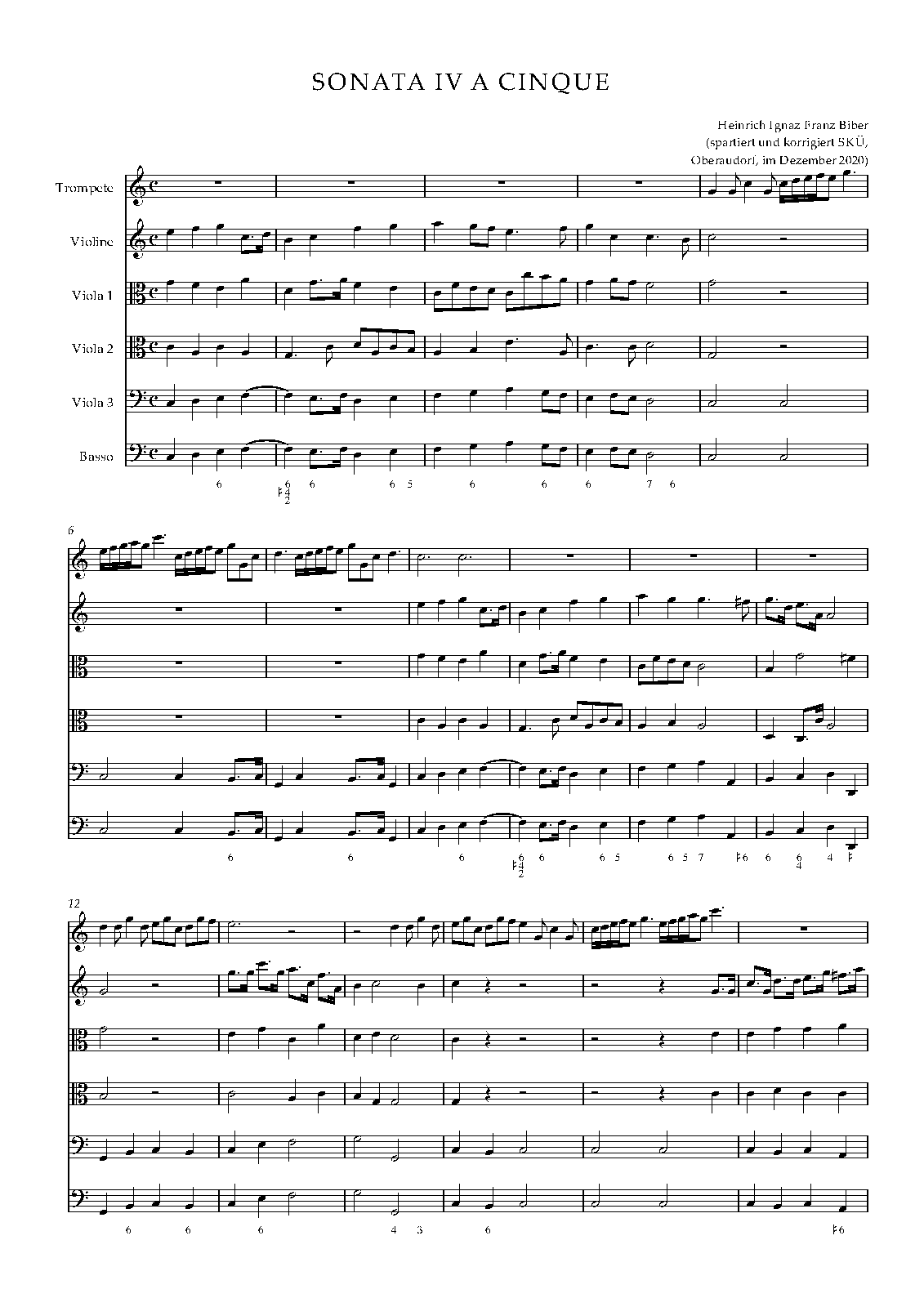 - C 117, Sonata IV a cinque in C, trumpet, violin, 2 violas, violone and basso continuo