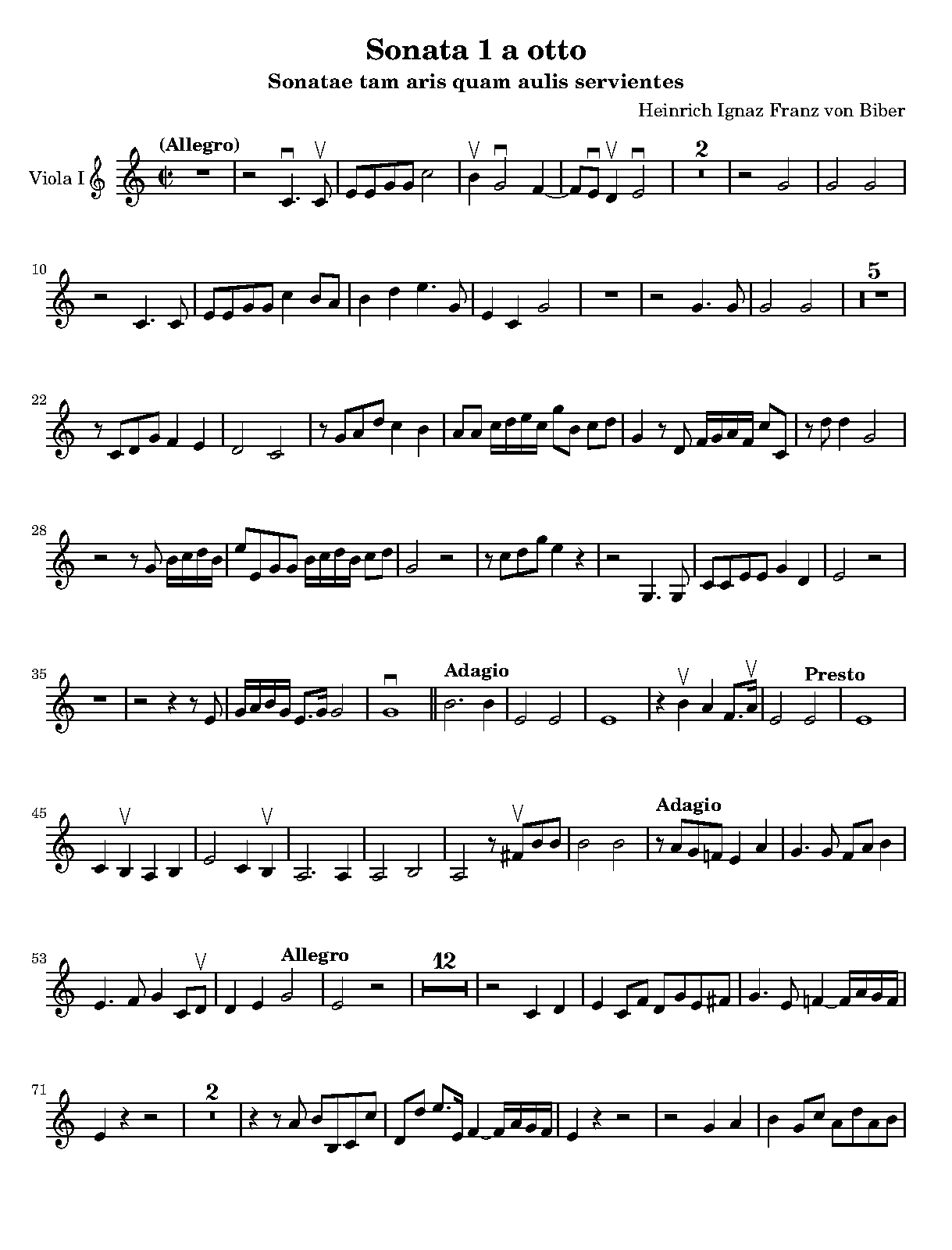 - C 114, Sonata I a otto in C, 2 trumpets, 2 violins, 3 violas, violone, and basso continuo