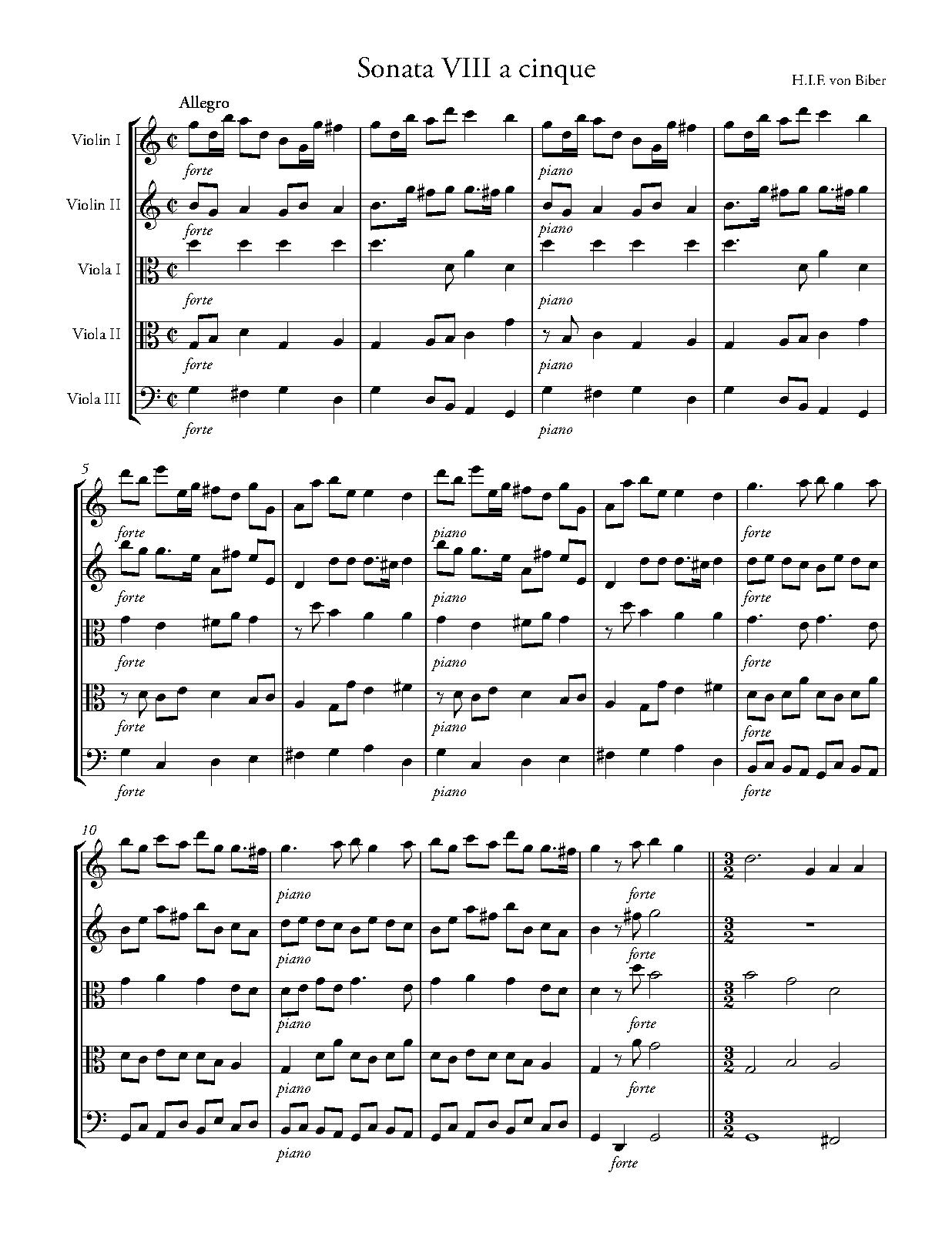 - C 119, Sonata VI a cinque in F, 2 violins, 2 violas, violone and basso continuo