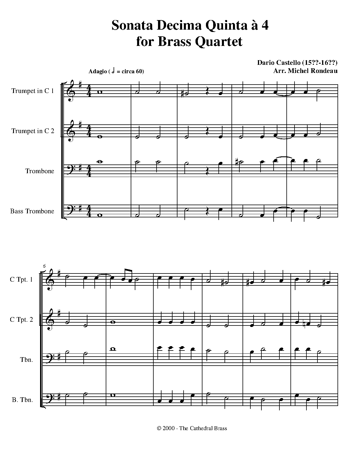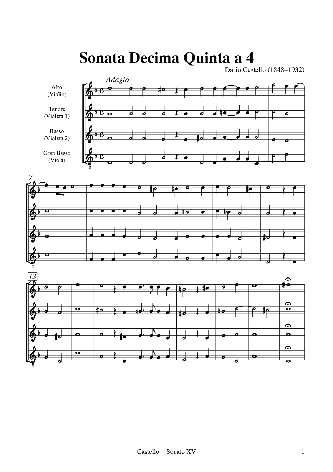 Castello himself was a wind player, and according to Grove Music, "Castello's two collections of sonatas, comprising 29 works, are not as idiomatic to the violin as works by some of his contemporaries (for example G.B. Fontana, C.A. Marini and Uccellini), but the virtuoso instrumental writing, especially for the bassoon, is notable." This gives a clear indication as to the types of instruments that would be suitable for these sonatas.