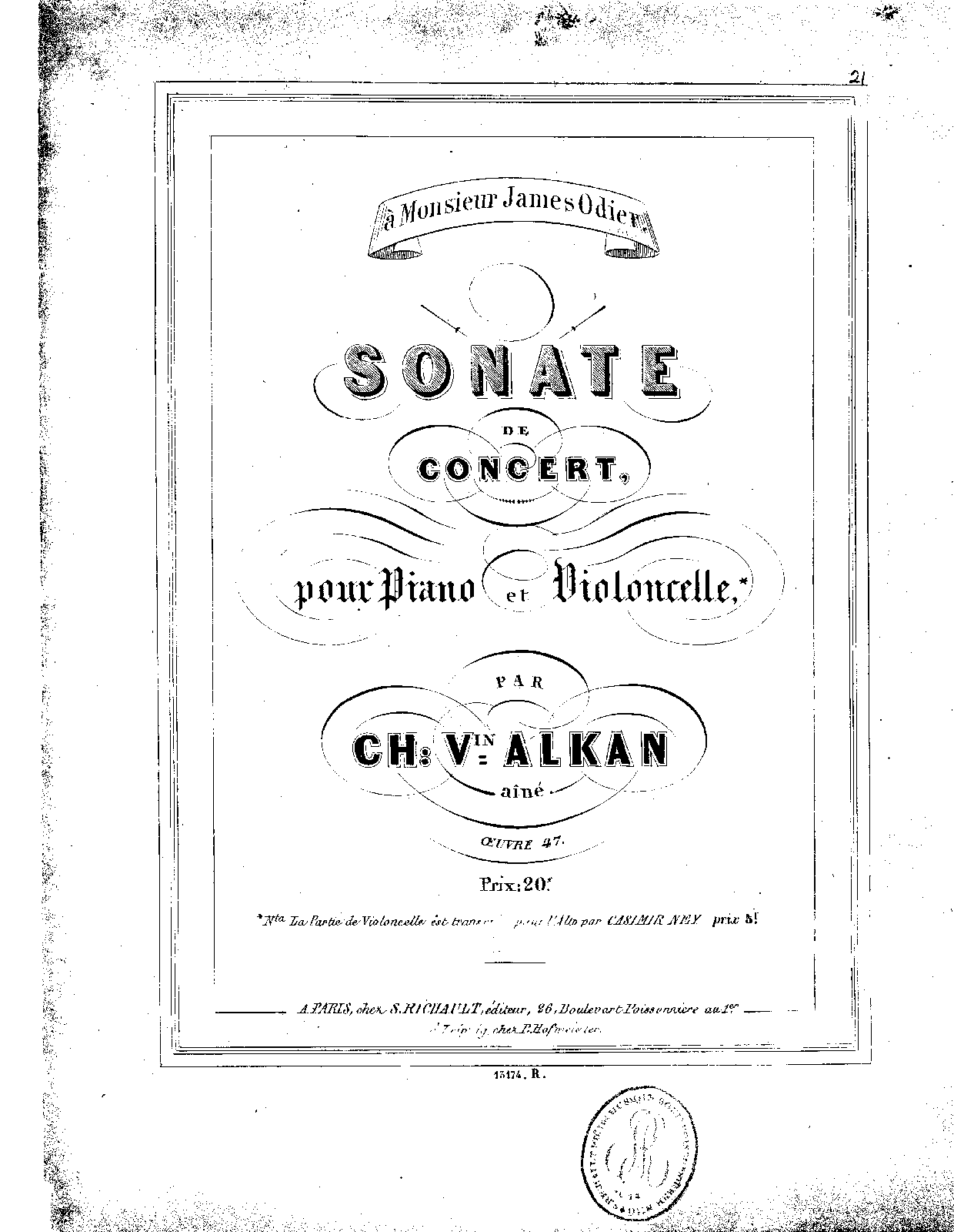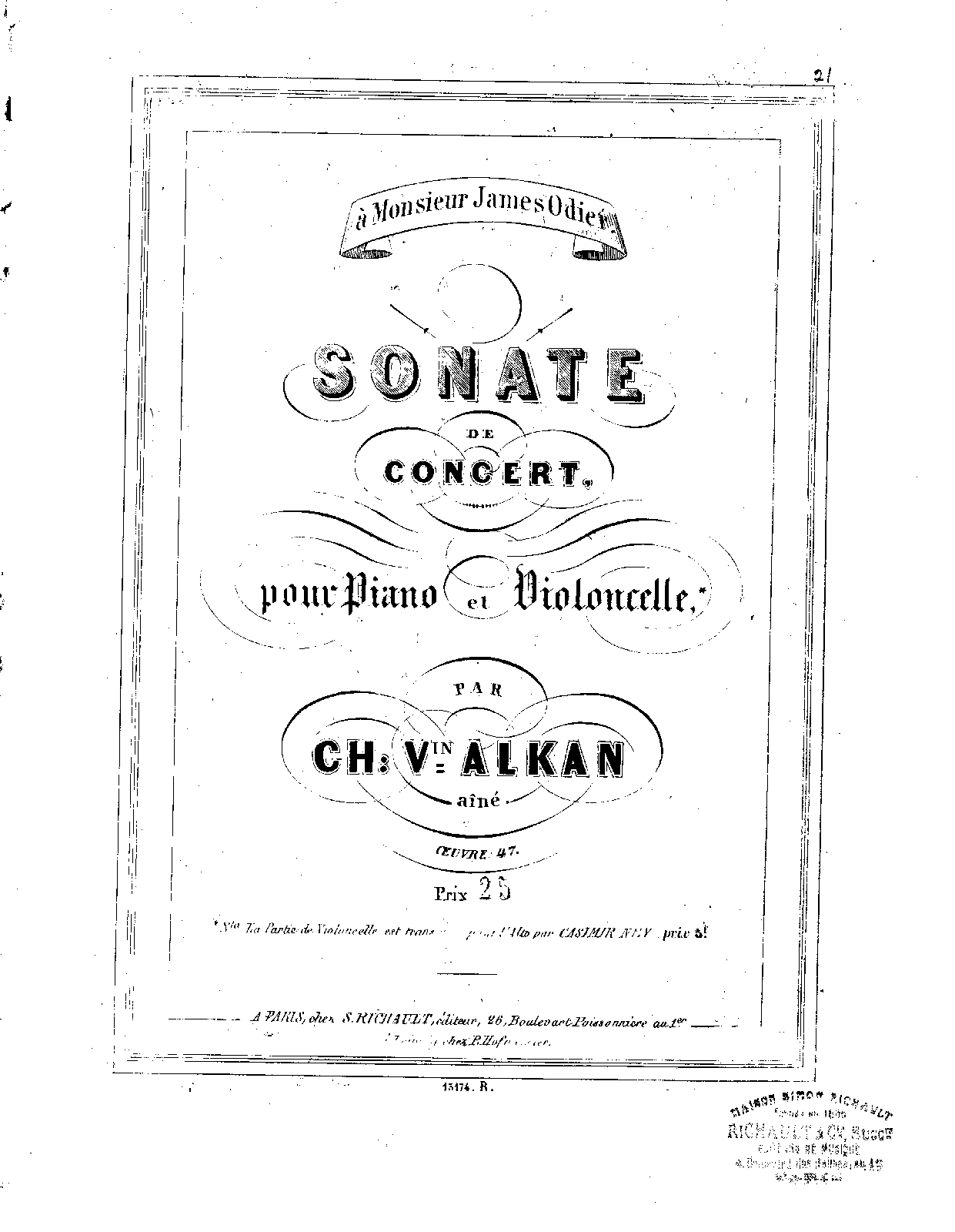 Name Aliases 演奏会用ソナタ; チェロソナタ (アルカン)