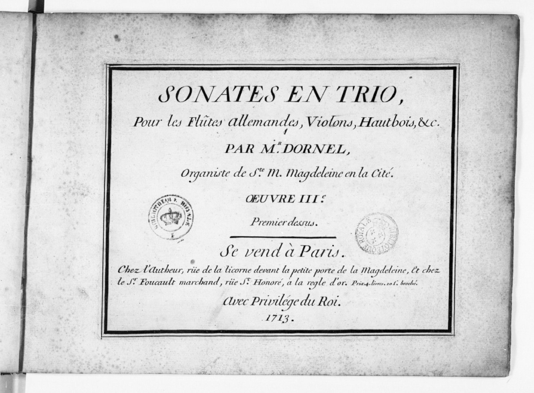 | Alternative. Title | Sonates en Trio, pour les Flùtes Allemandes, Violons, Hautbois, &c. |