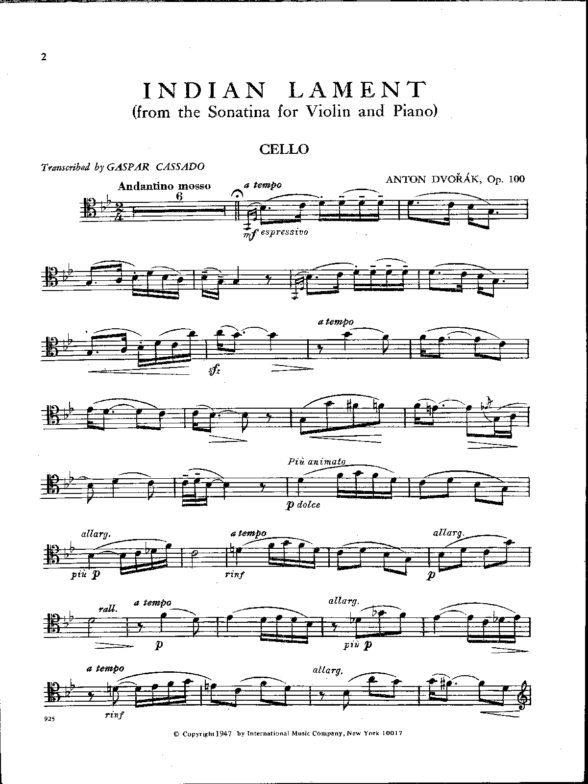 | Extra Information | Included in the category Intermediate Works for Violin. The violin part(s) is in 1st to 3rd position. The subtitle of 2. Larghetto Indian Lament or Indian Canzonetta is not in the original score. |