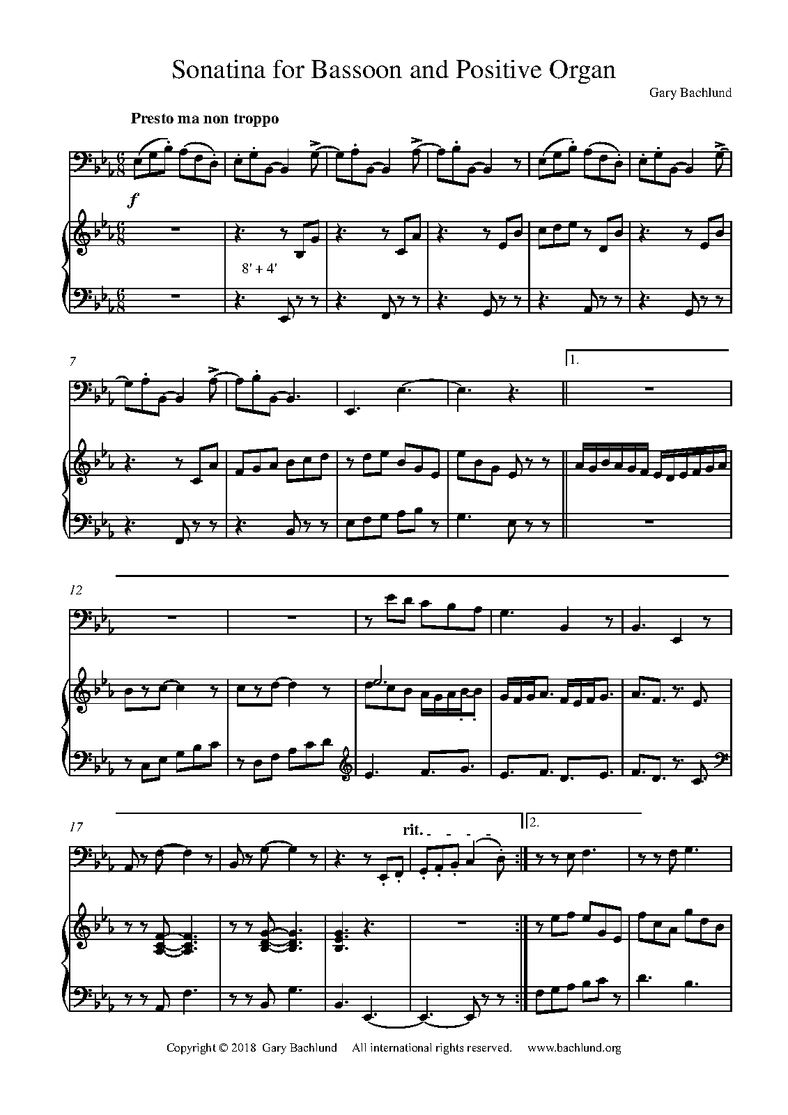 | Work Title | Sonatina for Bassoon and Positive Organ |