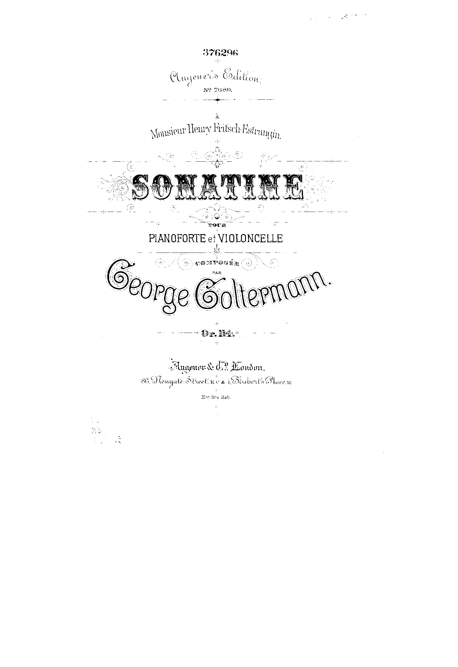 London: Augener & Co., No. 7689, n.d.[1891]. Plate 8683.