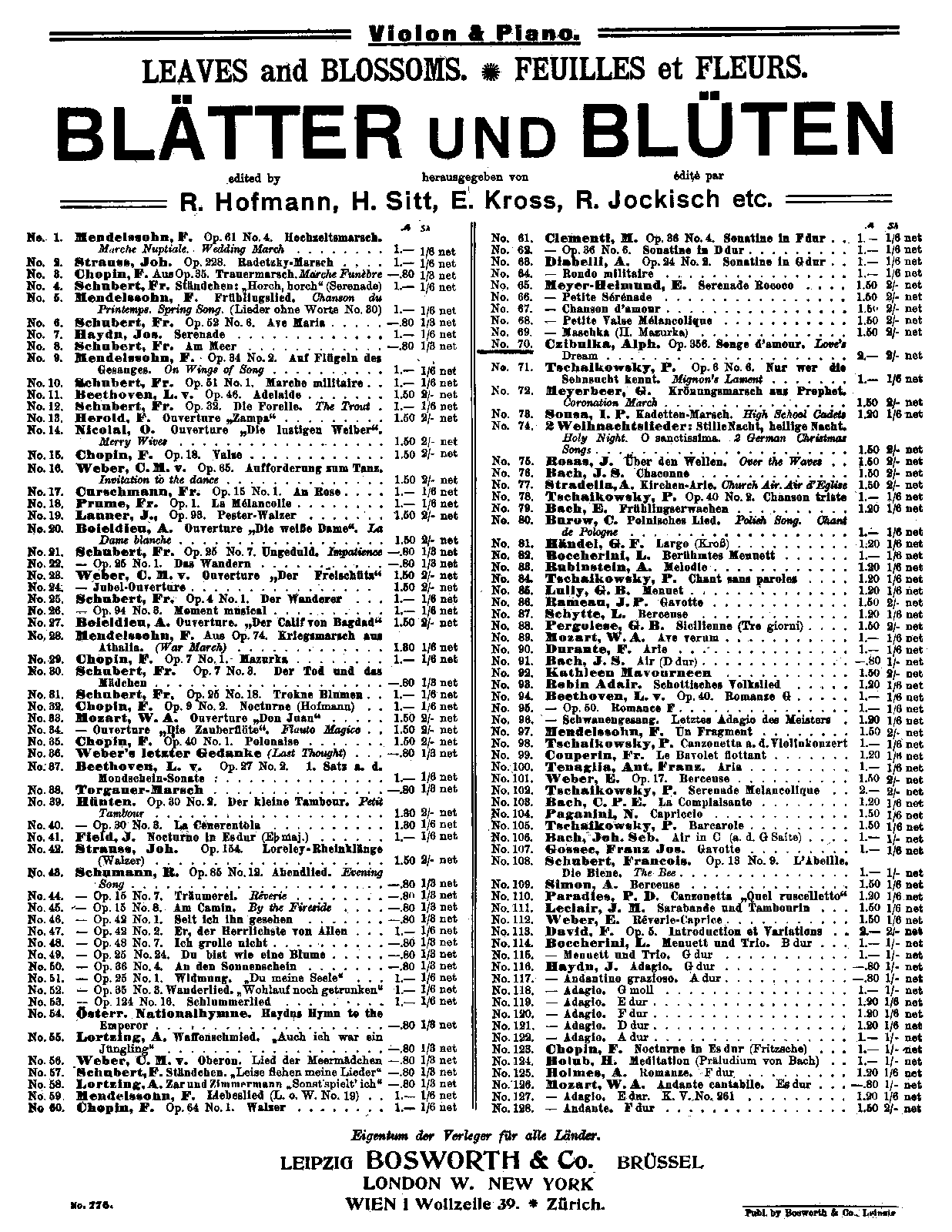 | First Publication | 1890 – Leipzig: Bosworth & Co. |