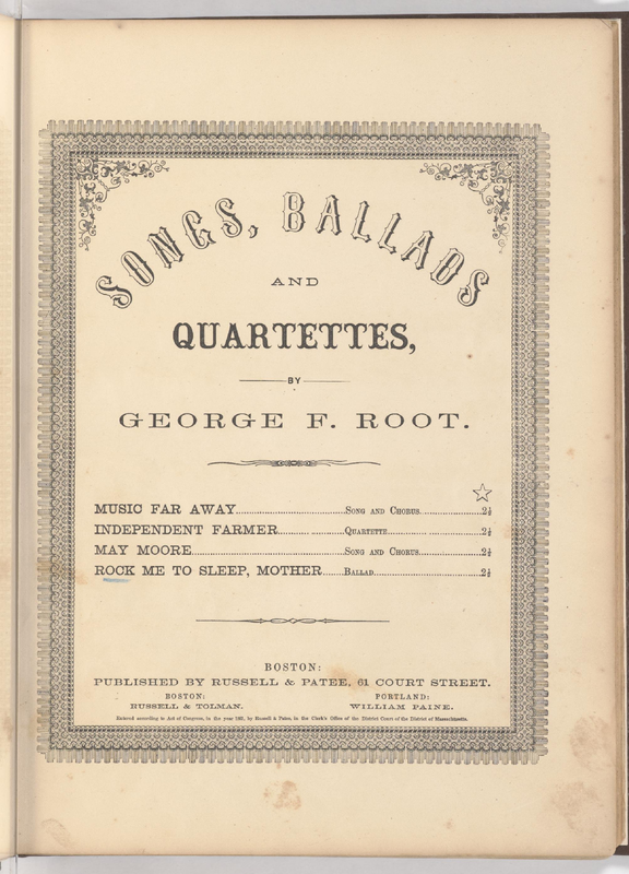 | Work Title | Songs, Ballads and Quartettes |