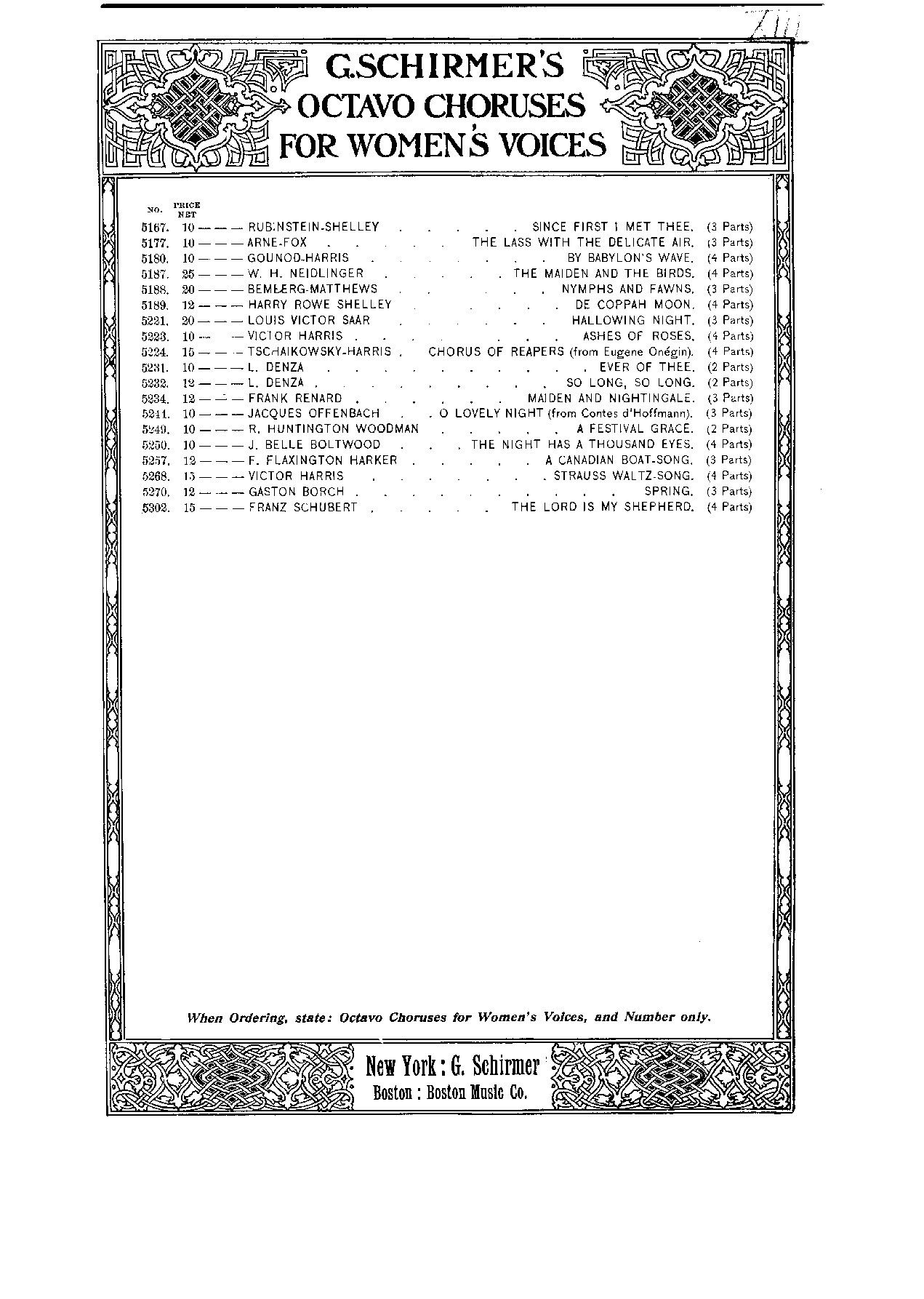 | Genre Categories | Songs; For female chorus; Scores featuring female chorus; |