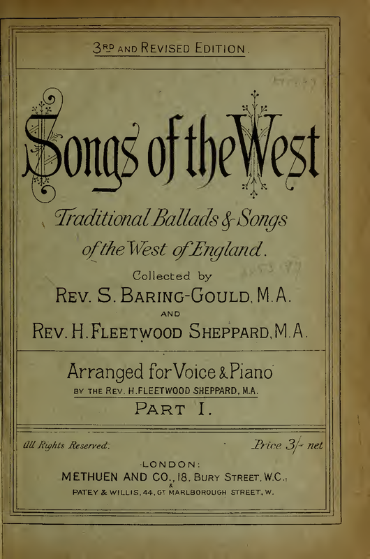 Misc. Notes Title: Songs of the West: folk songs of Devon & Cornwall collected from the mouths of the people by S. Baring-Gould, H. Fleetwood Sheppard, and F.W. Bussell, under the musical editorship of Cecil J. Sharp