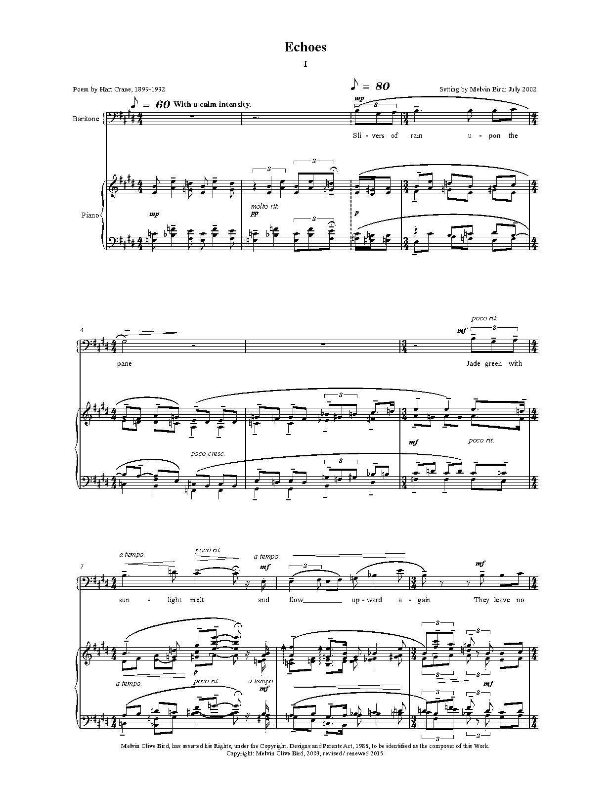 Melvin Bird has asserted his right under the Copyright, Designs and Patents Act, 1988, to be identified as the composer of this work. Please contact the composer for further information. The composer welcomes any performances and recordings. melvin.bird@hotmail.com. A clear and clean text.